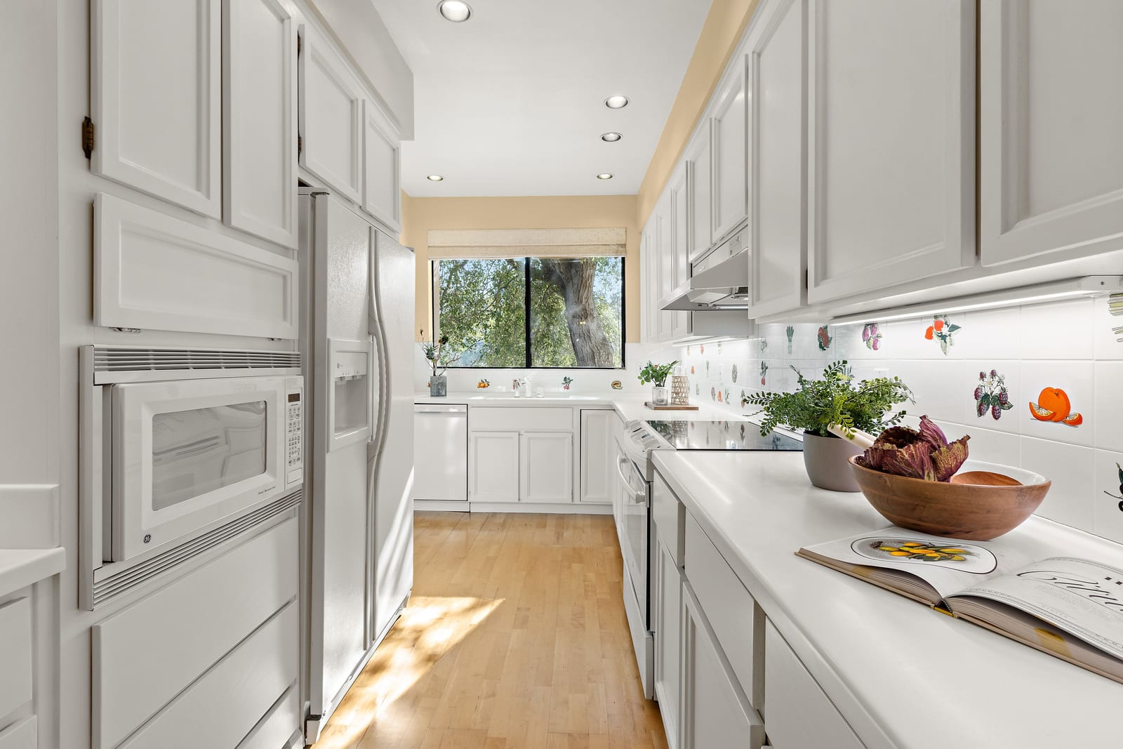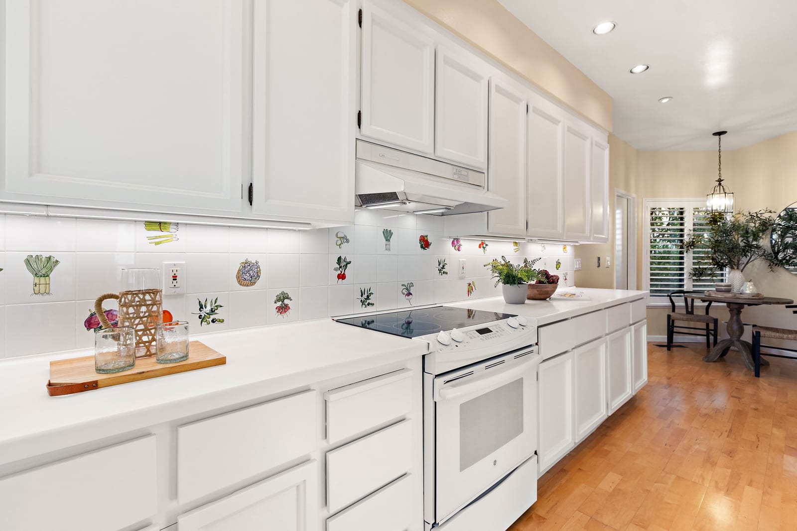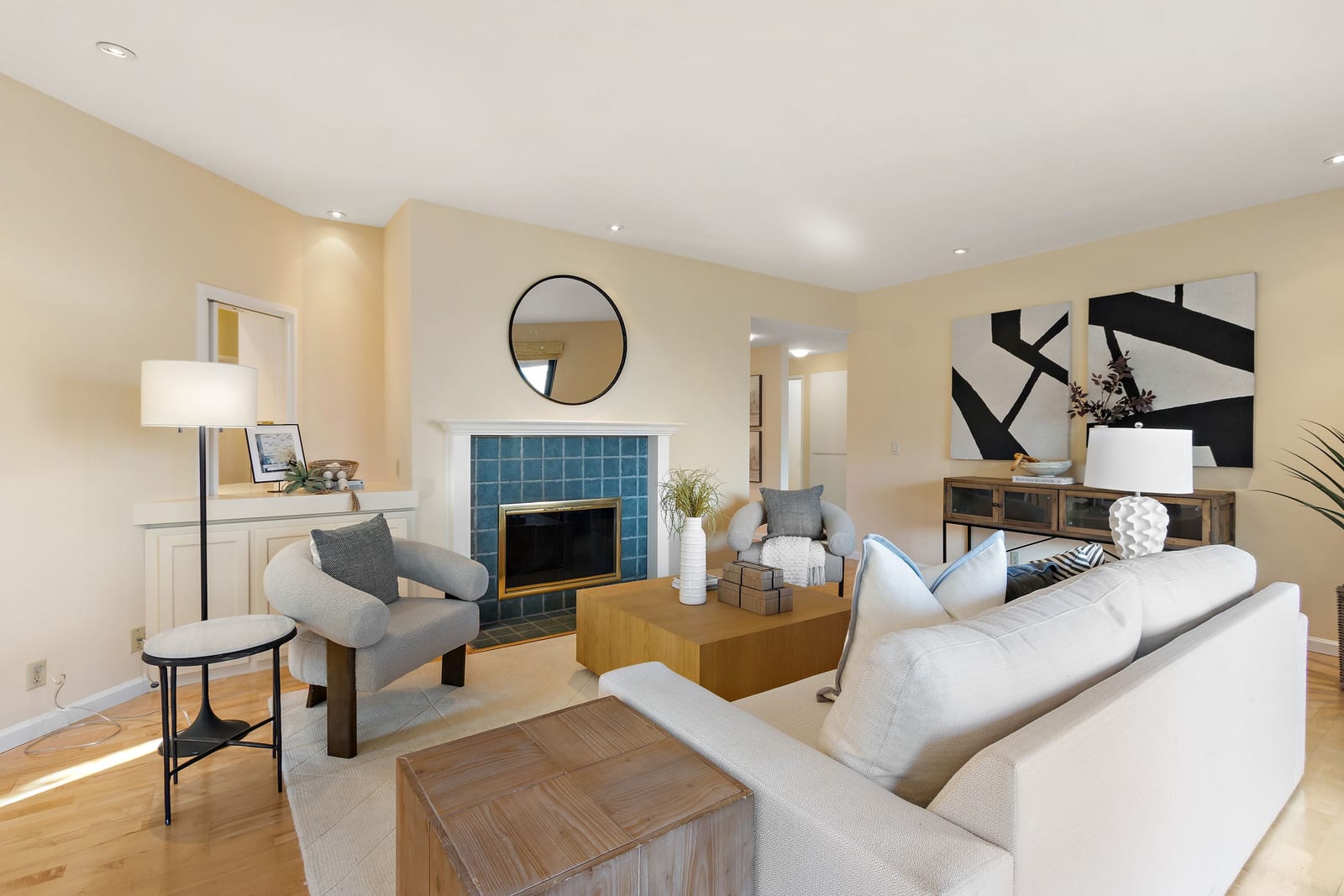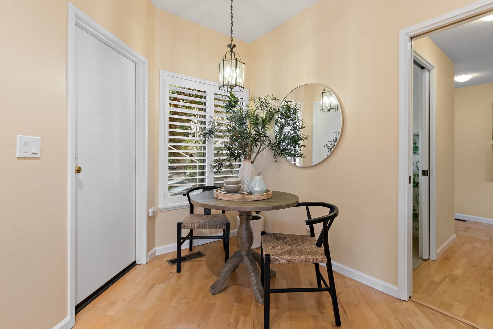 We are proud to present a new Villa Robles model situated in a rare two-story building near the top of Stanley Dollar in Rossmoor. Enjoy fabulous views of the Rossmoor valley, rolling hills, and Mt Diablo from the expansive tiled deck accessible from the Living Room, Dining Area, and Primary Bedroom. This private end-unit condo features a spacious Living Room/Dining Room with a fireplace and spotlight lighting that is surrounded by sylvan views from every window and sliding glass door. The large Kitchen has an abundance of cabinets and counter space as well as a passthrough to the Living Room and a with a cozy breakfast nook for informal meals. Plenty of desirable updates like smooth ceilings, hardwood floors, new carpeting in the bedrooms, and more. Parking and storage is a breeze with an attached garage with interior access off the Kitchen and a large storage loft. Solar panels on the roof provide great energy savings and the laundry room off the Kitchen has a side-by-side washer/dryer and cabinetry. Spend your mornings enjoying the sunrise over the Rossmoor valley in this special property.
