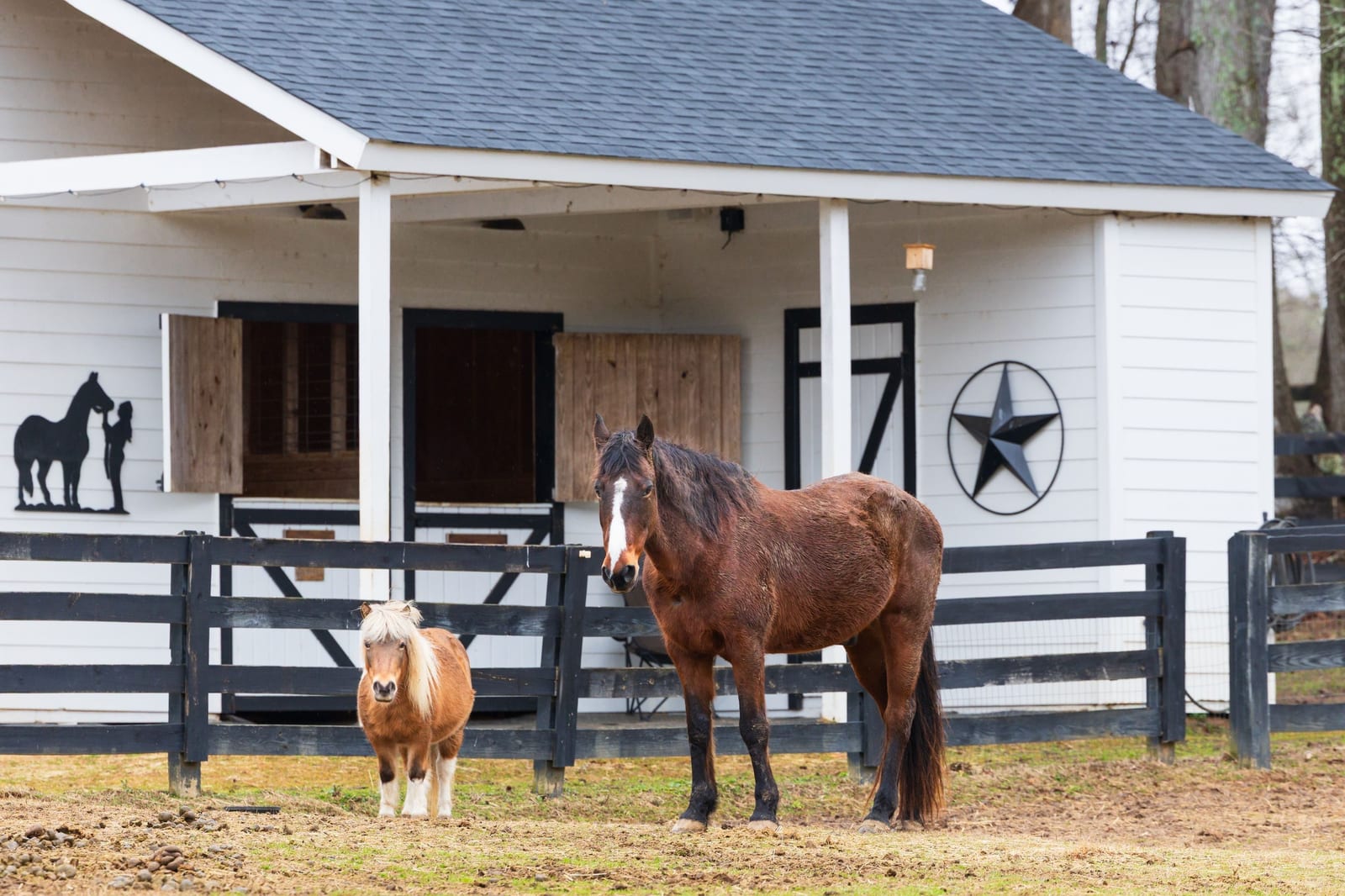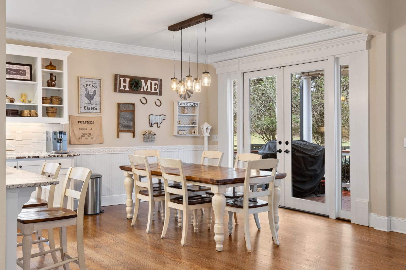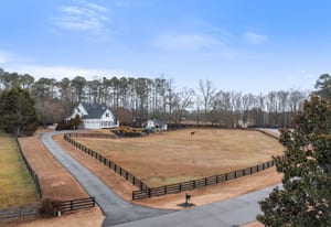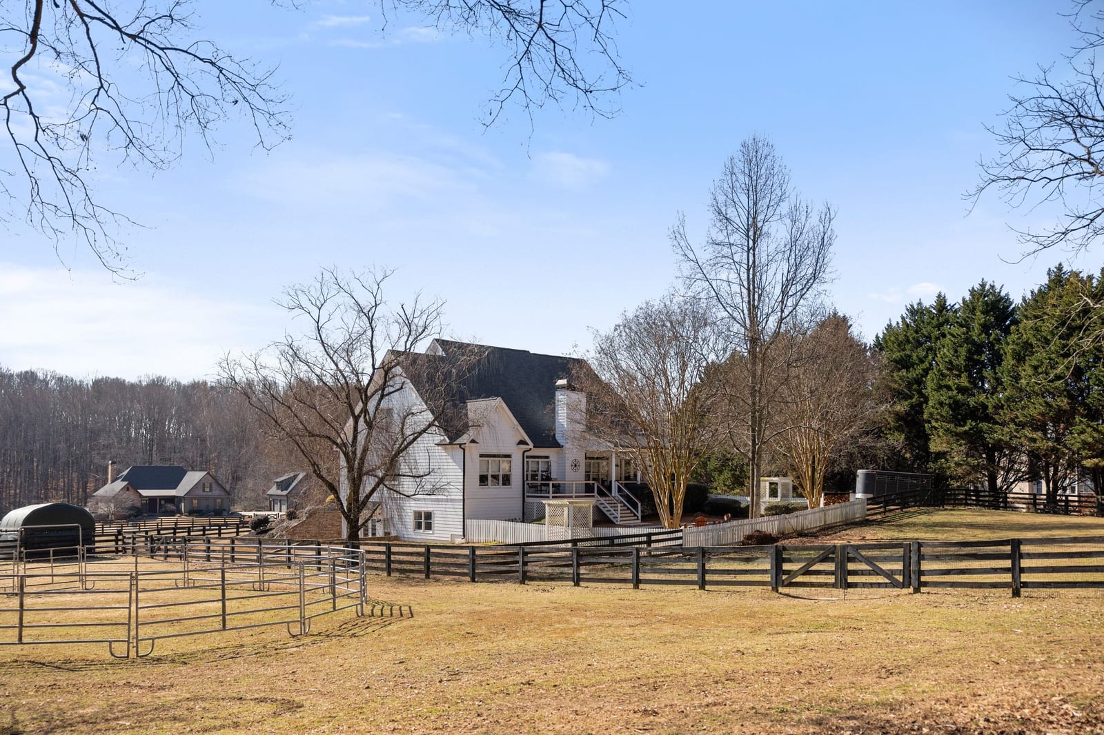 Exceptional Gentleman’s Farm on 2.91 Acres with Private Pasture & Barn!Experience the perfect blend of refined living and country charm with this stunning gentleman’s farm nestled on 2.91 private acres in a highly sought-after Cumming location with the advantage of Cherokee County taxes.The inviting open floor plan begins with a dramatic two-story foyer and flows effortlessly into spacious, light-filled living areas. The main-level primary suite offers a true retreat, featuring a luxurious spa-inspired bath and generous walk-in closet. At the heart of the home, the chef’s kitchen showcases stainless steel appliances, white cabinetry, stone countertops, and an expansive breakfast room that opens to an oversized fireside grand room — ideal for everyday living and entertaining. A separate formal dining room, large laundry room, powder room, and hardwood flooring throughout the main level complete the thoughtfully designed first floor.