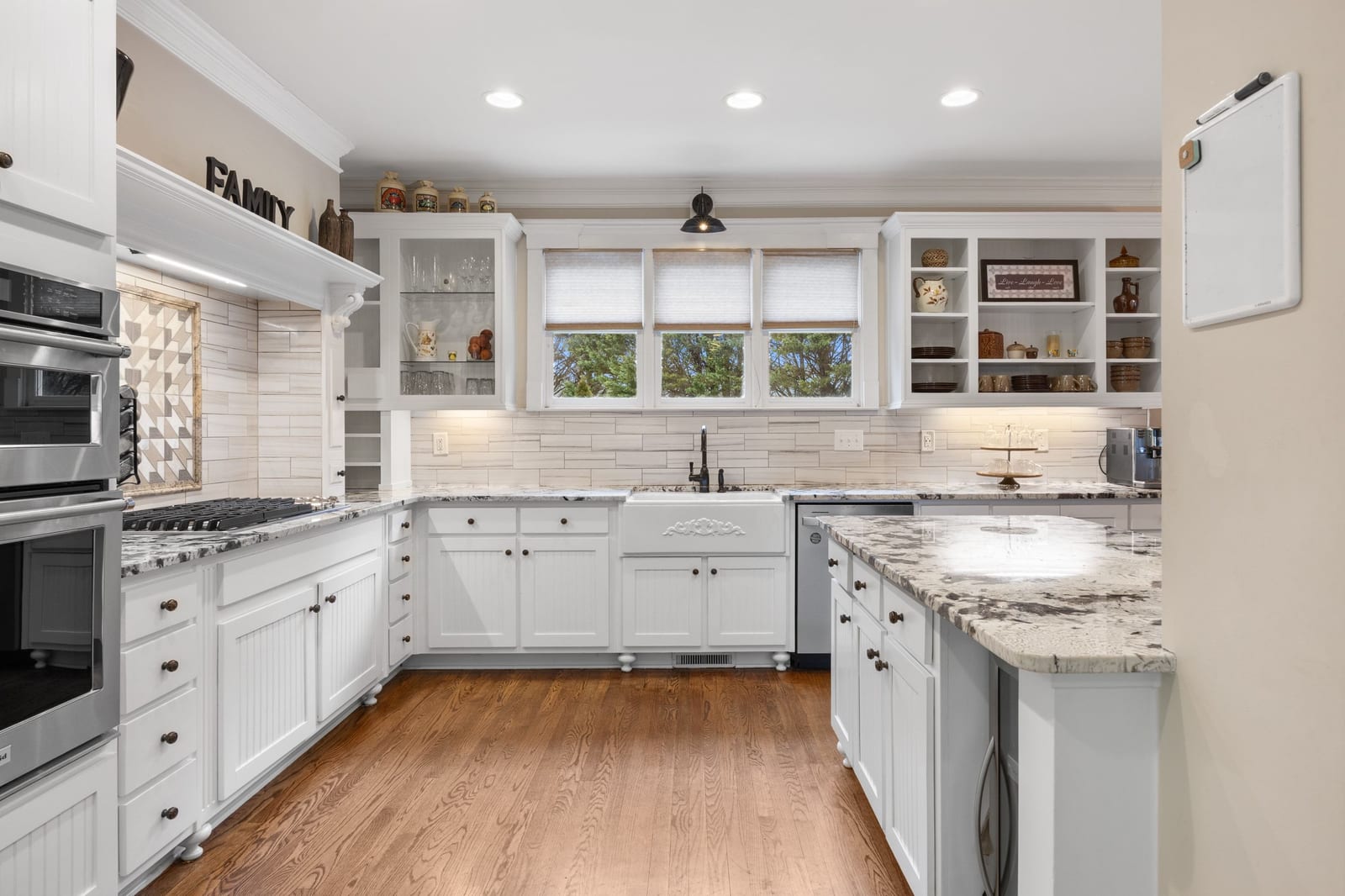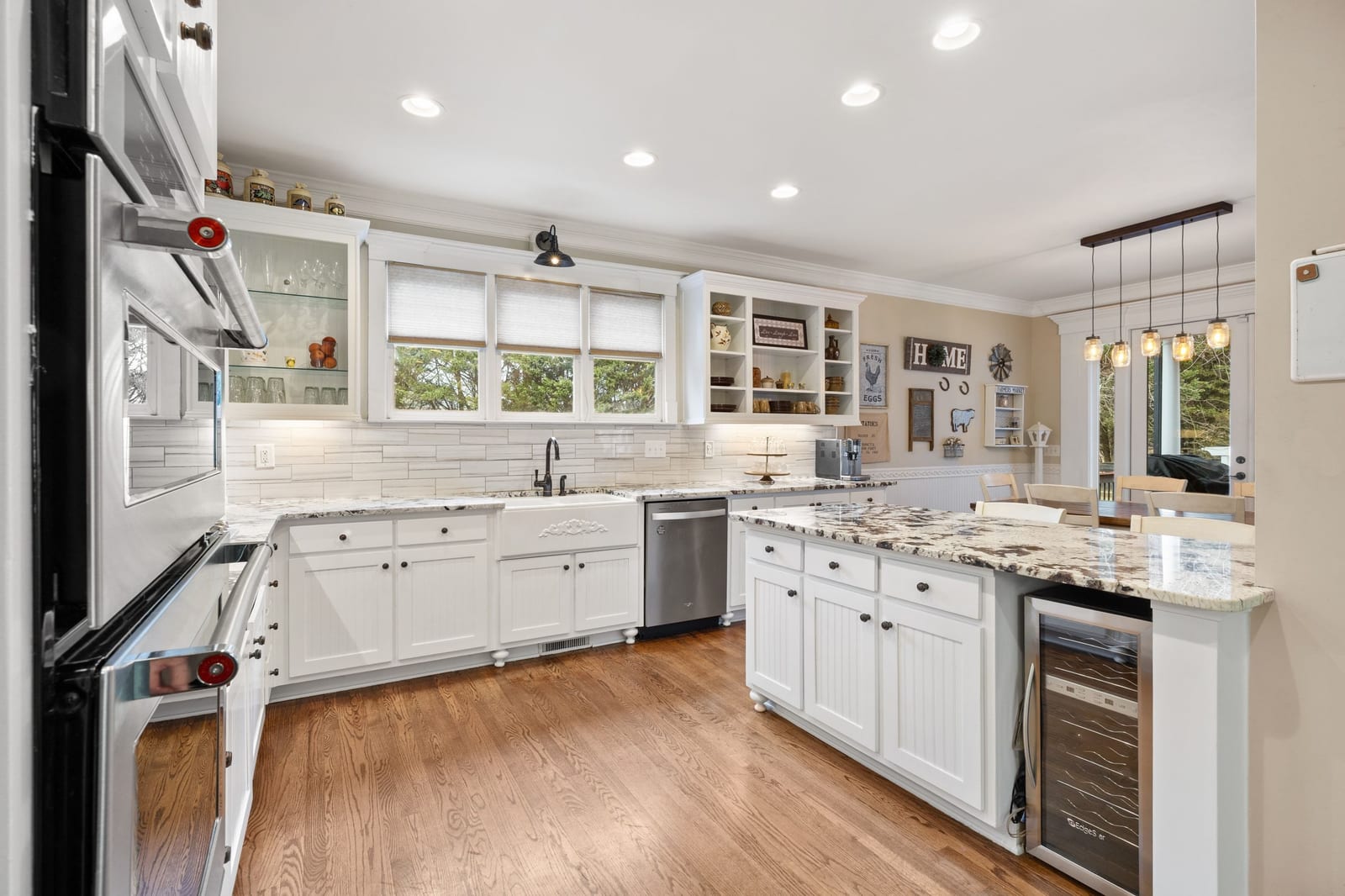 Upstairs, four spacious bedrooms and two full recently renovated baths provide exceptional space for family and guests. The finished terrace level adds incredible versatility with an oversized family room and kitchenette, a beautifully appointed full bath with dressing area, a large bedroom with private exterior access, and abundant storage/workshop space — ideal for multigenerational living, guests, or recreation. Additionally, the exterior of the home has been recently painted.Outdoor living is ...
