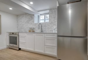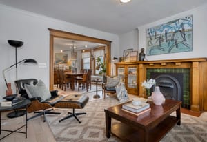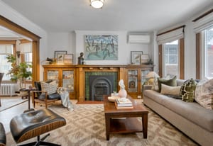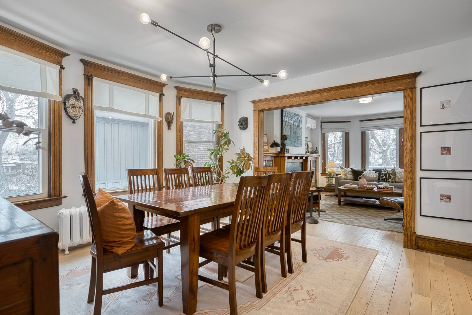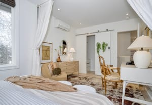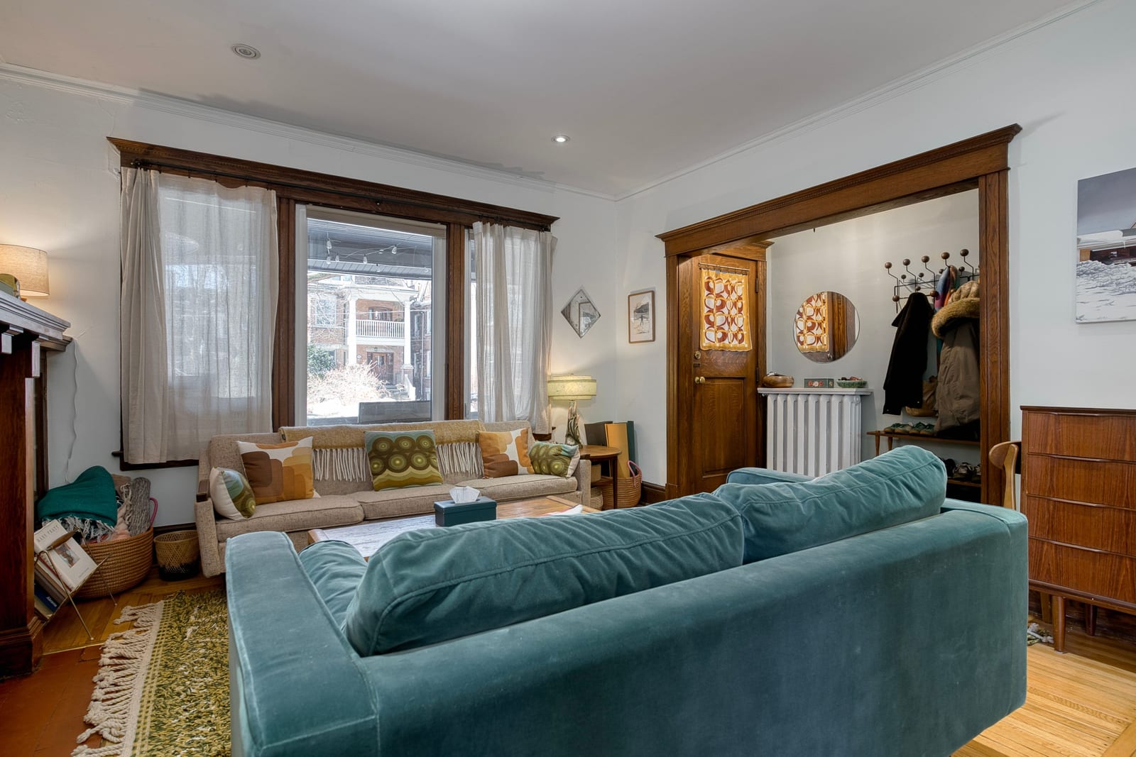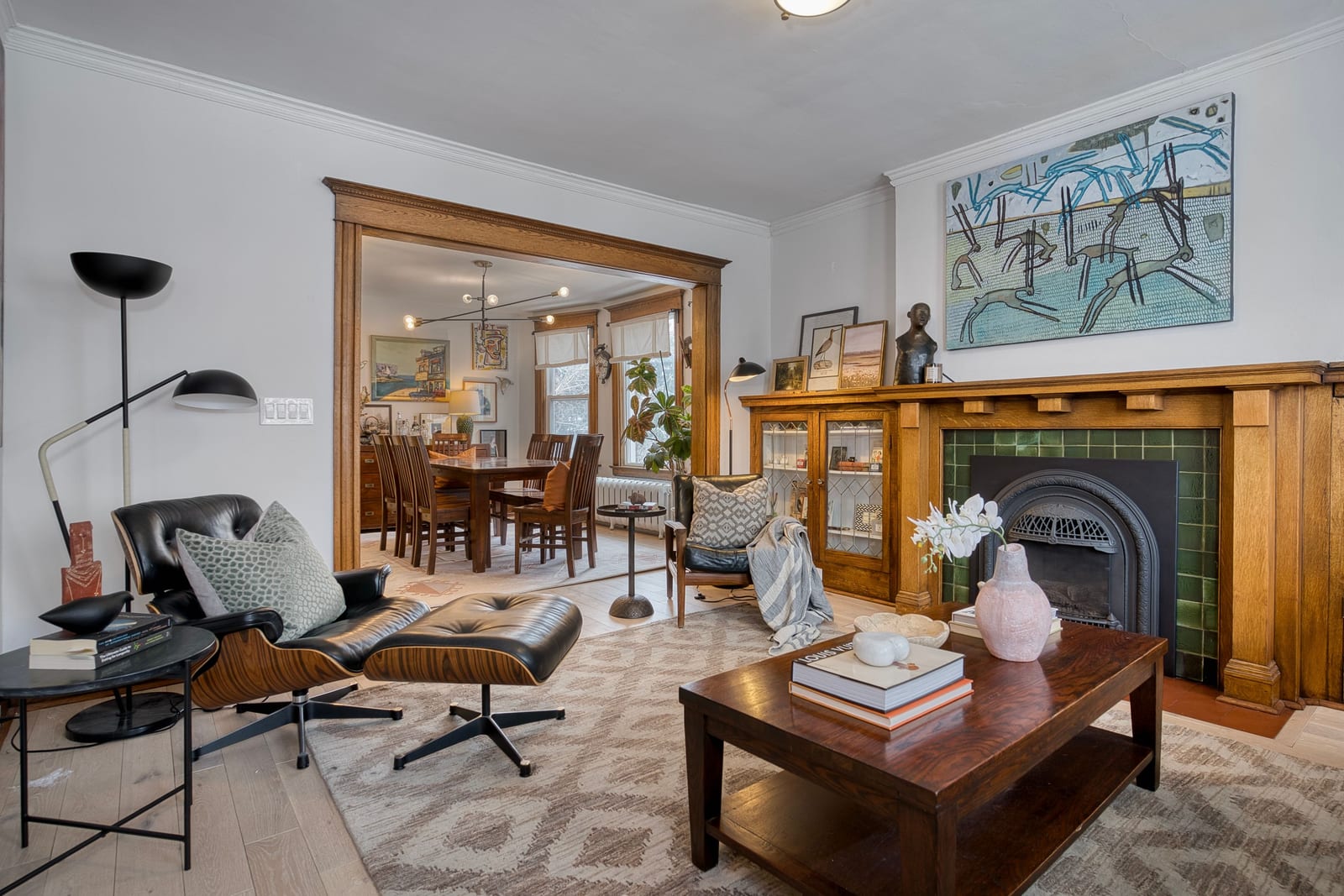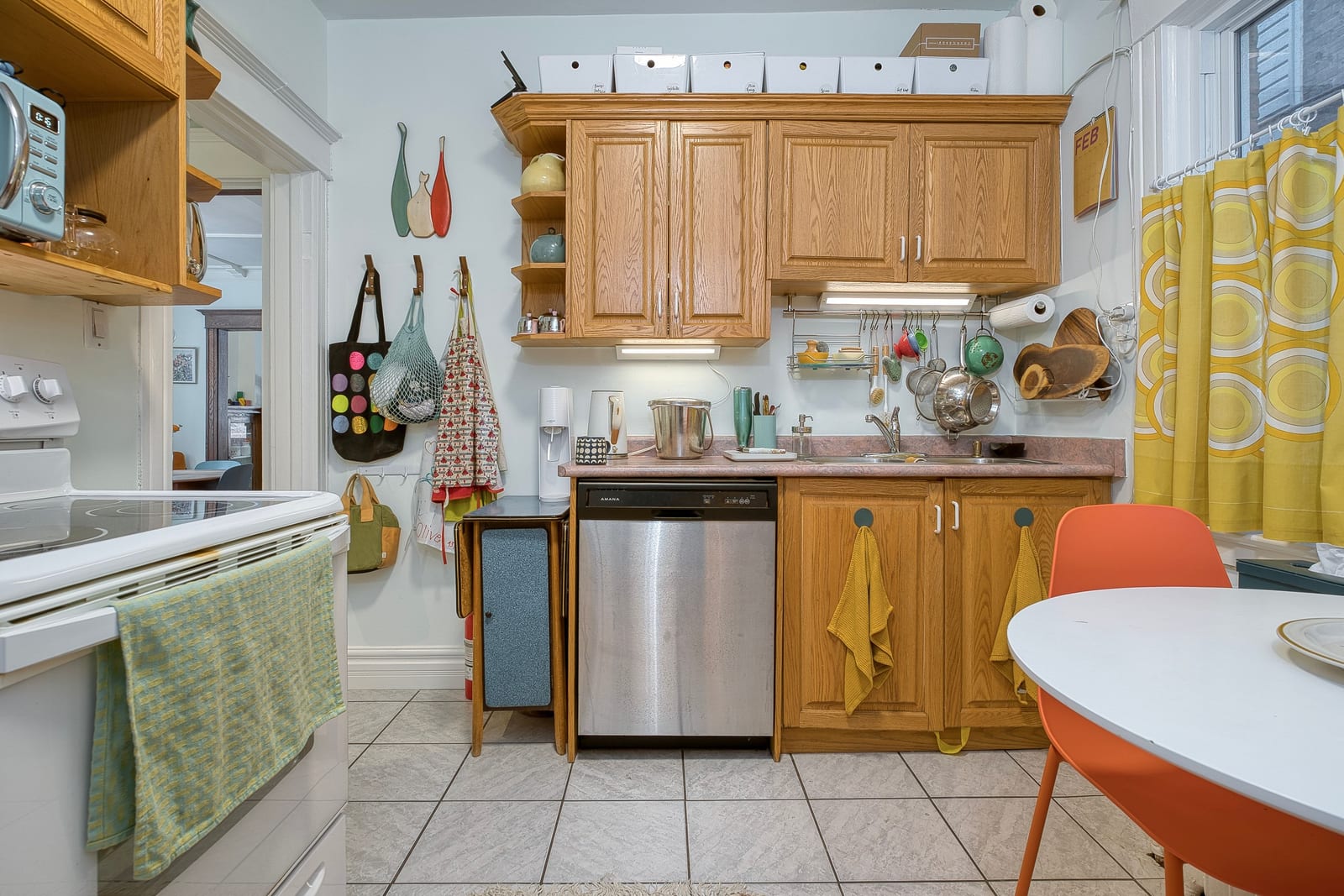 Stunning Arts & Crafts Duplex in High Park! This exquisite detached residence blends timeless architectural character with exceptional modern design, offering approximately 4,200 sq. ft of finished living space across three levels plus a beautifully renovated basement suite. An extraordinary opportunity for multigenerational living, premium rental income, or an expansive owner’s retreat. The main floor showcases classic Arts & Crafts detailing, including original built-ins with leaded glass doors, rich wood trim, and an ornamental fireplace in the formal living room. A separate formal dining room enhances the home’s elegance, while two spacious bedrooms—one ideal as a sunroom or office—and a renovated 4-piece bath complete this level. There are 2 ductless A/C units that cool this main floor unit. The upper suite, spanning the second and third floors, has been fully renovated and thoughtfully designed by renowned Felix Leicher of Baukultur. The chef-inspired kitchen features a large island, integrated appliances (Miele oven and island cooktop), and a walk-in pantry, flowing seamlessly into open-concept living and dining spaces with original woodwork, custom cabinetry, and a gas fireplace. This level also includes two generous east-facing bedrooms with wall-to-wall windows, a powder room, a large laundry room, and abundant storage. The third floor offers two additional spacious bedrooms, including one with a walkout to a private tree-top balcony. The luxurious primary suite impresses with cathedral ceilings, floor-to-ceiling windows, wall-to-wall built-in dressers, and a spa-like 5-piece ensuite. A skylit family room, serene meditation space, additional powder room, and extensive closet space complete this remarkable level. Hardwood floors run throughout, and the owner’s suite is equipped with seven ductless A/C units for optimal comfort. The recently renovated basement suite features a separate entrance, quartz kitchen with new stainless steel appliances, stylish 3-piece bath, and generous living and bedroom areas—currently vacant.