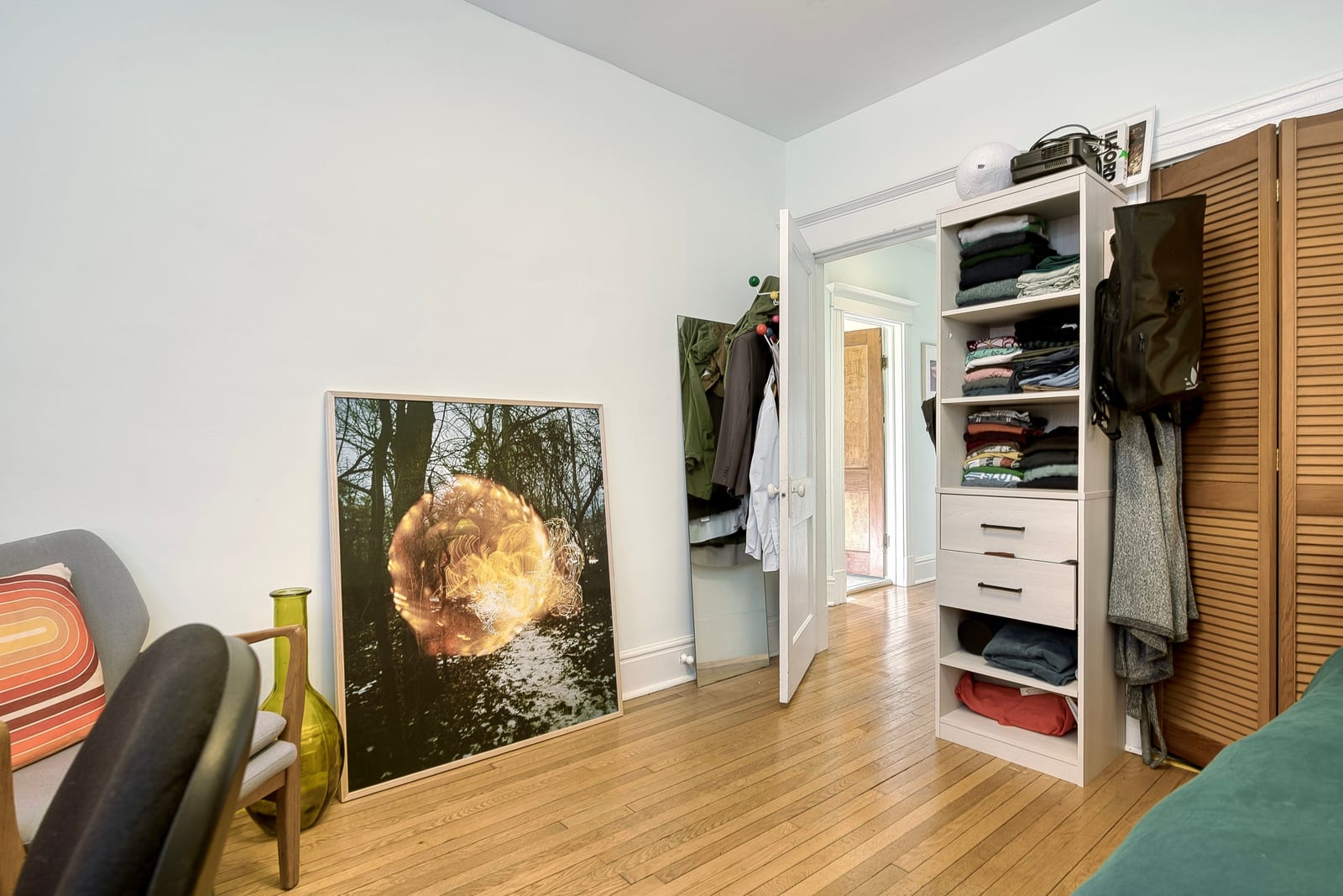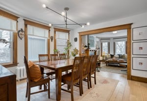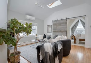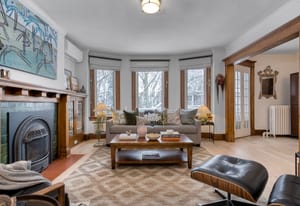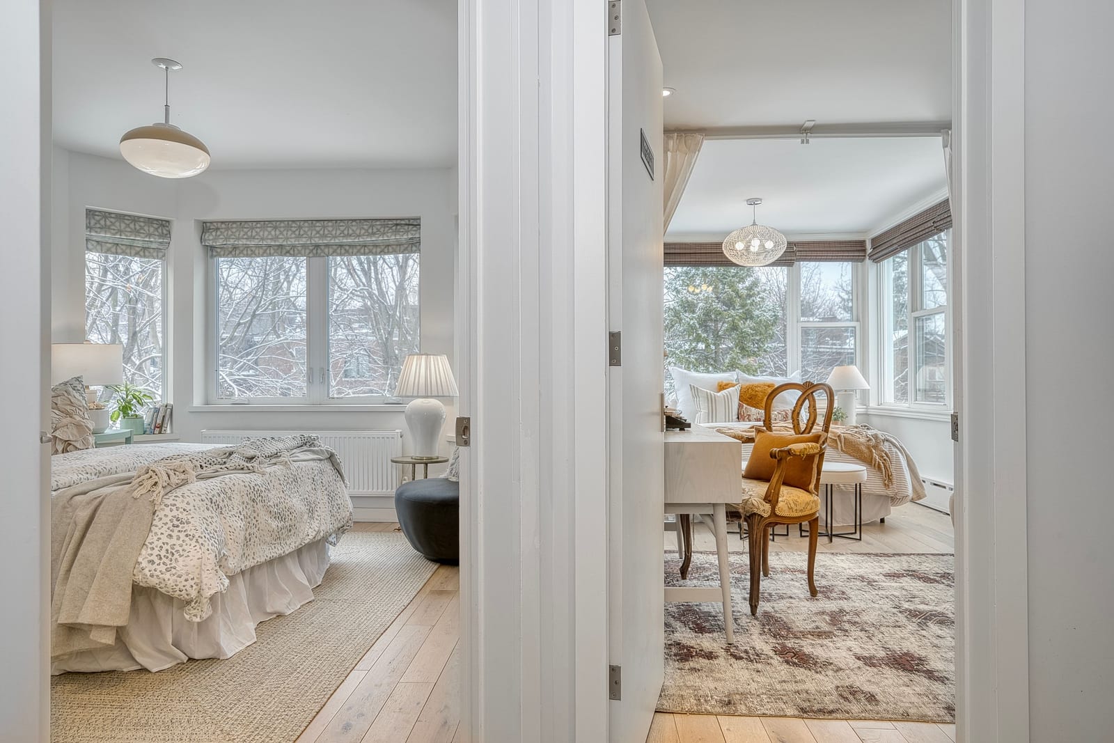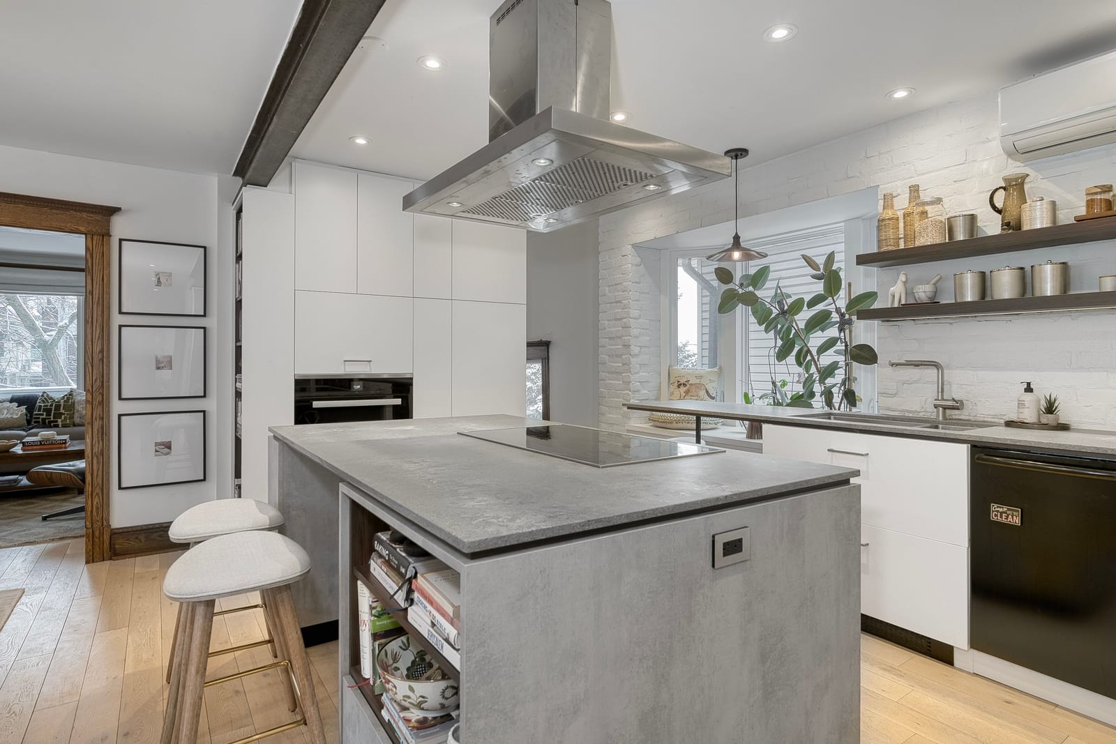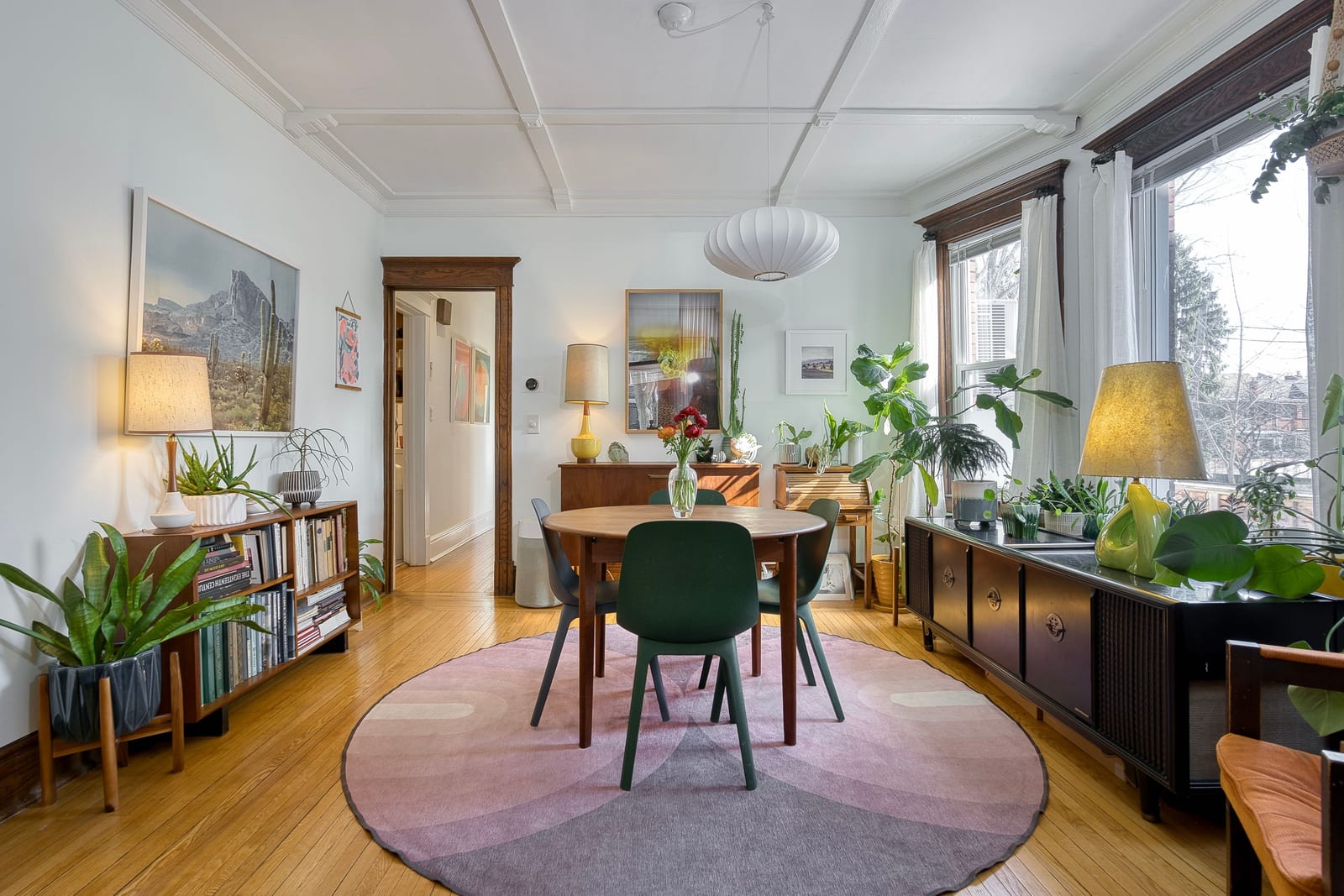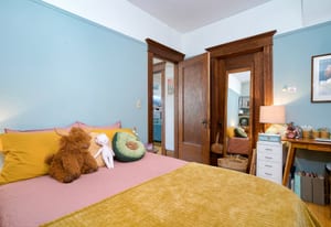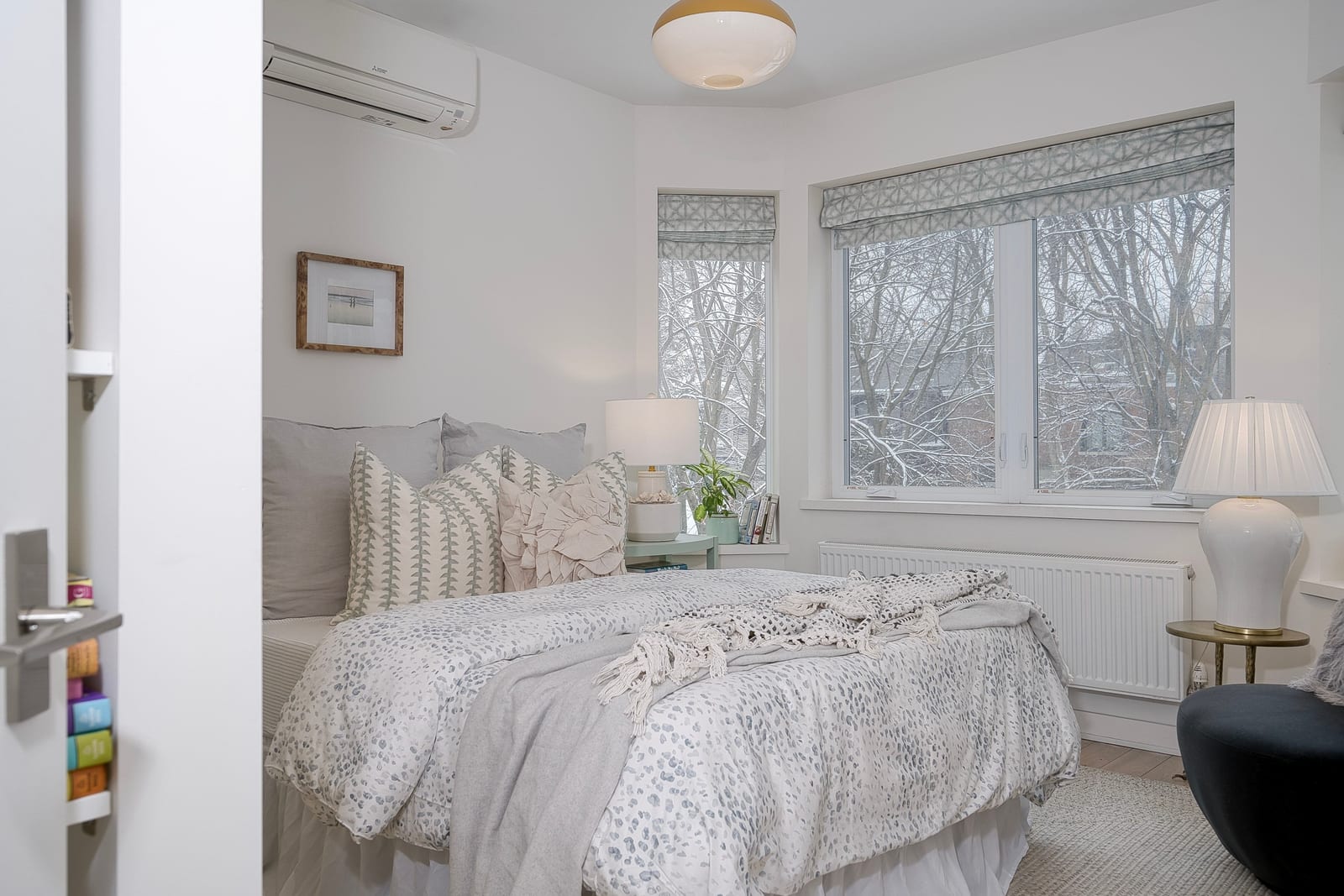 Stunning Arts & Crafts Duplex in High Park! This exquisite detached residence blends timeless architectural character with exceptional modern design, offering approximately 4,200 sq. ft of finished living space across three levels plus a beautifully renovated basement suite. An extraordinary opportunity for multigenerational living, premium rental income, or an expansive owner’s retreat. The main floor showcases classic Arts & Crafts detailing, including original built-ins with leaded glass doors, rich wood trim, and an ornamental fireplace in the formal living room. A separate formal dining room enhances the home’s elegance, while two spacious bedrooms—one ideal as a sunroom or office—and a renovated 4-piece bath complete this level. There are 2 ductless A/C units that cool this main floor unit. The upper suite, spanning the second and third floors, has been fully renovated and thoughtfully designed by renowned Felix Leicher of Baukultur. The chef-inspired kitchen features a large island, integrated appliances (Miele oven and island cooktop), and a walk-in pantry, flowing seamlessly into open-concept living and dining spaces with original woodwork, custom cabinetry, and a gas fireplace. This level also includes two generous east-facing bedrooms with wall-to-wall windows, a powder room, a large laundry room, and abundant storage. The third floor offers two additional spacious bedrooms, including one with a walkout to a private tree-top balcony. The luxurious primary suite impresses with cathedral ceilings, floor-to-ceiling windows, wall-to-wall built-in dressers, and a spa-like 5-piece ensuite. A skylit family room, serene meditation space, additional powder room, and extensive closet space complete this remarkable level. Hardwood floors run throughout, and the owner’s suite is equipped with seven ductless A/C units for optimal comfort. The recently renovated basement suite features a separate entrance, quartz kitchen with new stainless steel appliances, stylish 3-piece bath, and generous living and bedroom areas—currently vacant.