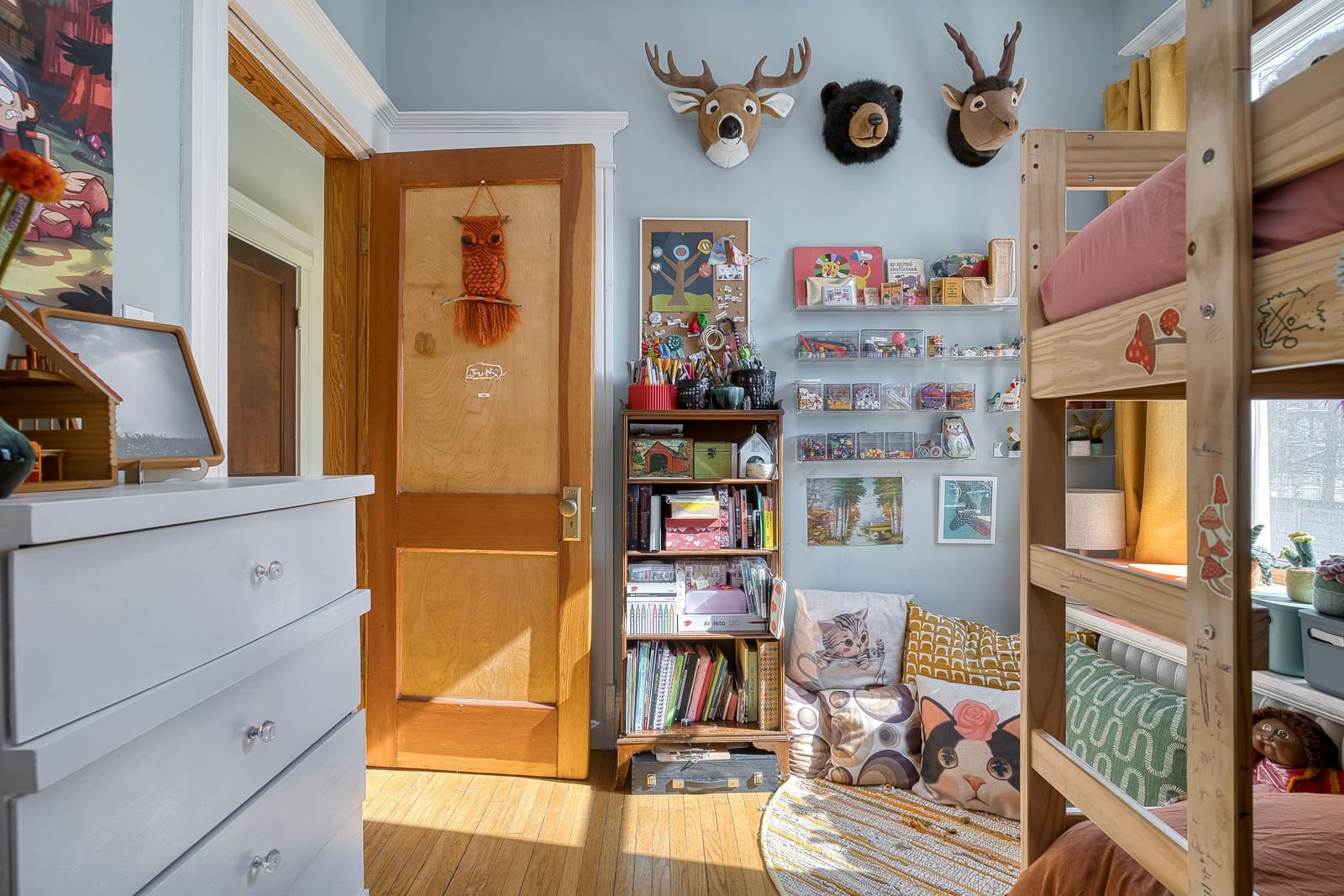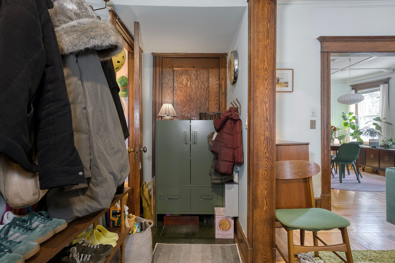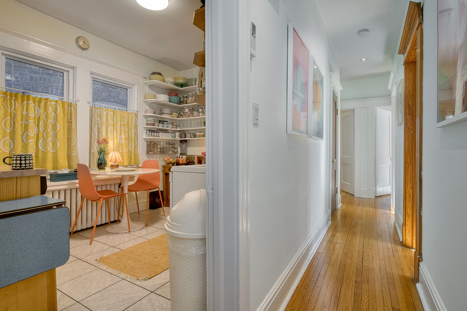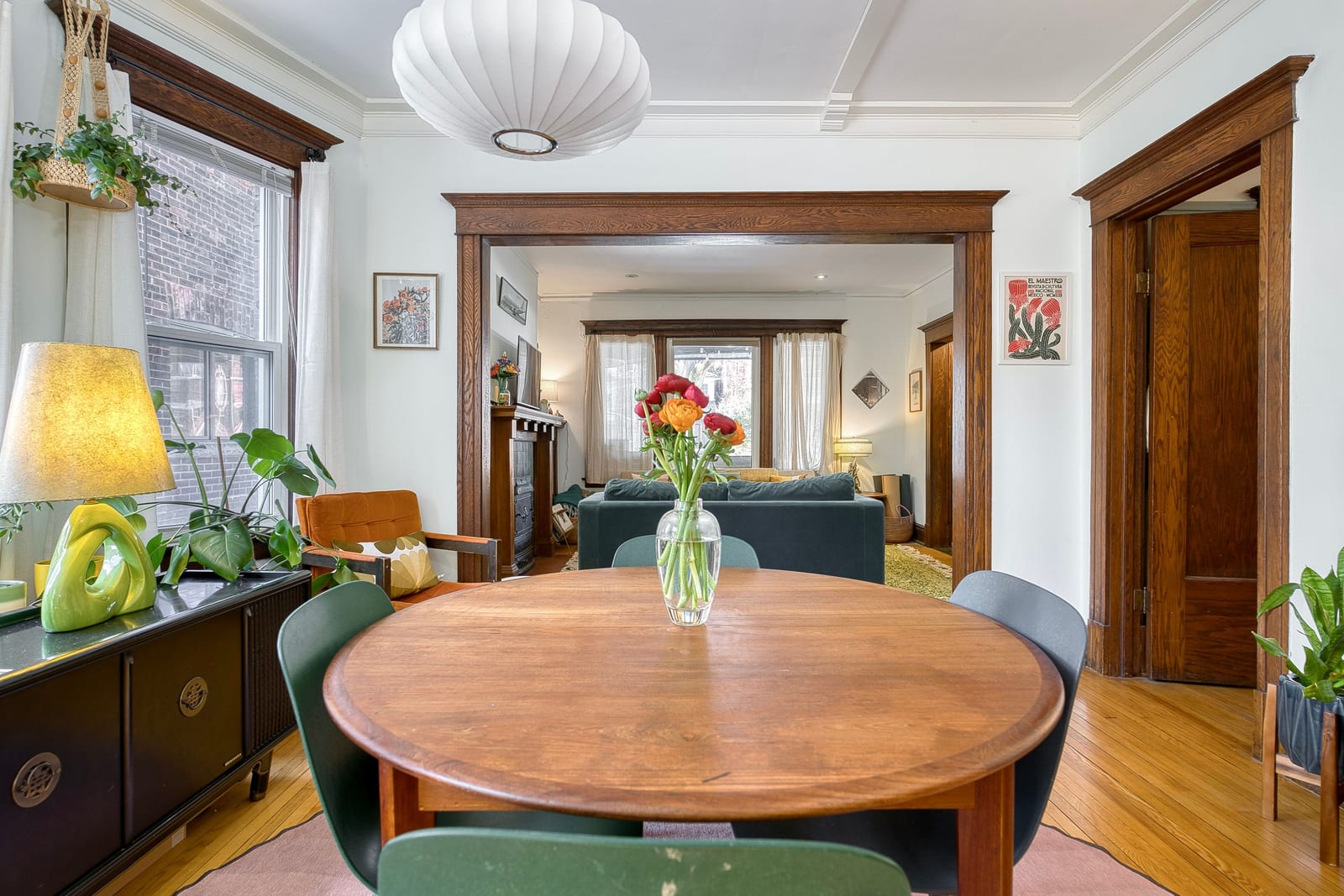 Stunning Arts & Crafts Duplex in High Park! This exquisite detached residence blends timeless architectural character with exceptional modern design, offering approximately 4,200 sq. ft of finished living space across three levels plus a beautifully renovated basement suite. An extraordinary opportunity for multigenerational living, premium rental income, or an expansive owner’s retreat. The main floor showcases classic Arts & Crafts detailing, including original built-ins with leaded glass doors, rich wood trim, and an ornamental fireplace in the formal living room. A separate formal dining room enhances the home’s elegance, while two spacious bedrooms—one ideal as a sunroom or office—and a renovated 4-piece bath complete this level. There are 2 ductless A/C units that cool this main floor unit. The upper suite, spanning the second and third floors, has been fully renovated and thoughtfully designed by renowned Felix Leicher of Baukultur. The chef-inspired kitchen features a large island, integrated appliances (Miele oven and island cooktop), and a walk-in pantry, flowing seamlessly into open-concept living and dining spaces with original woodwork, custom cabinetry, and a gas fireplace. This level also includes two generous east-facing bedrooms with wall-to-wall windows, a powder room, a large laundry room, and abundant storage. The third floor offers two additional spacious bedrooms, including one with a walkout to a private tree-top balcony. The luxurious primary suite impresses with cathedral ceilings, floor-to-ceiling windows, wall-to-wall built-in dressers, and a spa-like 5-piece ensuite. A skylit family room, serene meditation space, additional powder room, and extensive closet space complete this remarkable level. Hardwood floors run throughout, and the owner’s suite is equipped with seven ductless A/C units for optimal comfort. The recently renovated basement suite features a separate entrance, quartz kitchen with new stainless steel appliances, stylish 3-piece bath, and generous living and bedroom areas—currently vacant.