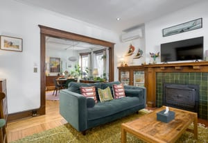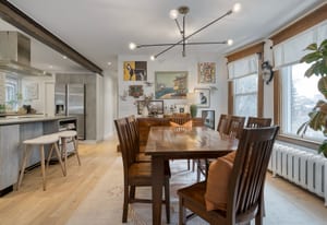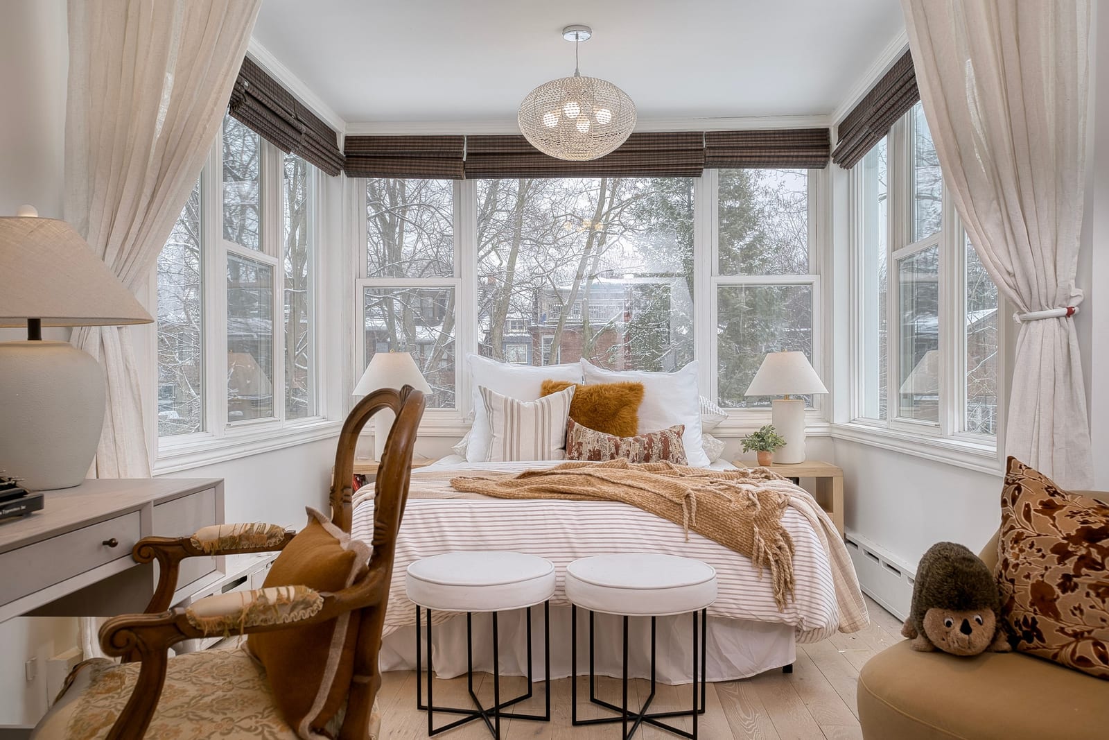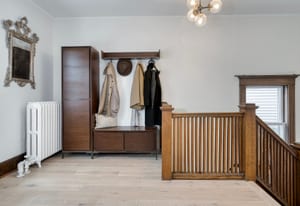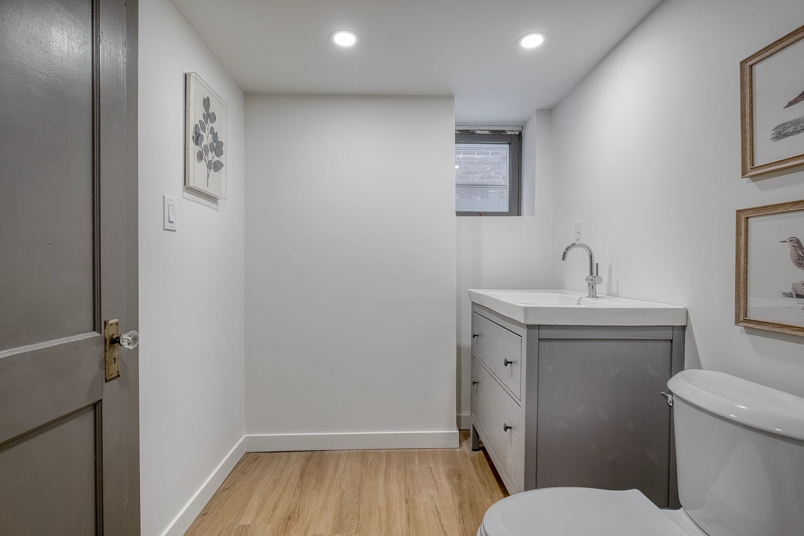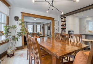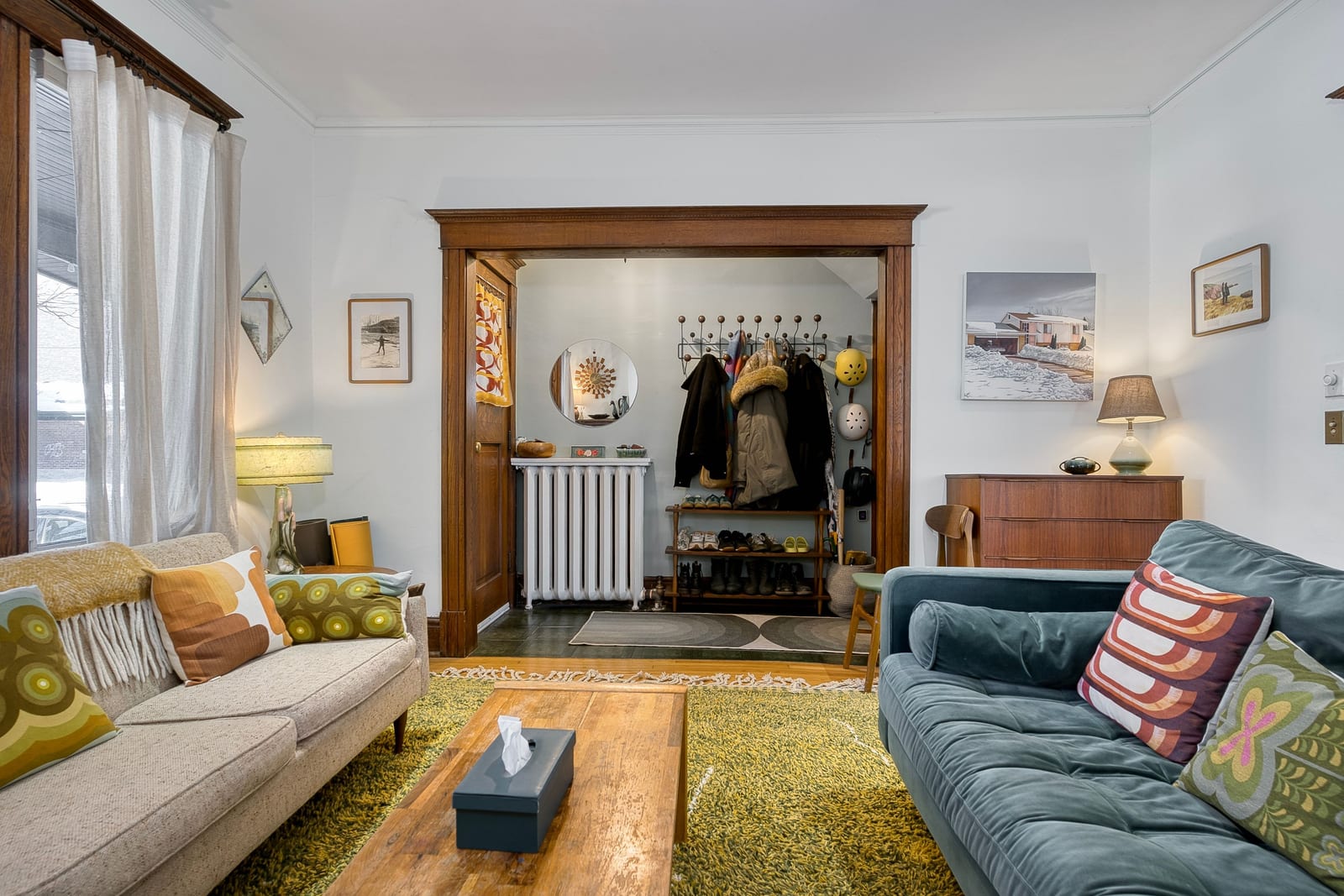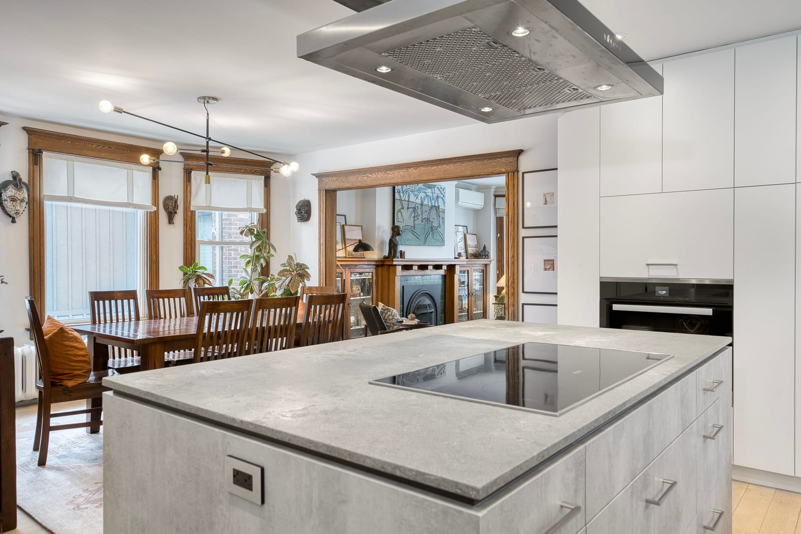 Stunning Arts & Crafts Duplex in High Park! This exquisite detached residence blends timeless architectural character with exceptional modern design, offering approximately 4,200 sq. ft of finished living space across three levels plus a beautifully renovated basement suite. An extraordinary opportunity for multigenerational living, premium rental income, or an expansive owner’s retreat. The main floor showcases classic Arts & Crafts detailing, including original built-ins with leaded glass doors, rich wood trim, and an ornamental fireplace in the formal living room. A separate formal dining room enhances the home’s elegance, while two spacious bedrooms—one ideal as a sunroom or office—and a renovated 4-piece bath complete this level. There are 2 ductless A/C units that cool this main floor unit. The upper suite, spanning the second and third floors, has been fully renovated and thoughtfully designed by renowned Felix Leicher of Baukultur. The chef-inspired kitchen features a large island, integrated appliances (Miele oven and island cooktop), and a walk-in pantry, flowing seamlessly into open-concept living and dining spaces with original woodwork, custom cabinetry, and a gas fireplace. This level also includes two generous east-facing bedrooms with wall-to-wall windows, a powder room, a large laundry room, and abundant storage. The third floor offers two additional spacious bedrooms, including one with a walkout to a private tree-top balcony. The luxurious primary suite impresses with cathedral ceilings, floor-to-ceiling windows, wall-to-wall built-in dressers, and a spa-like 5-piece ensuite. A skylit family room, serene meditation space, additional powder room, and extensive closet space complete this remarkable level. Hardwood floors run throughout, and the owner’s suite is equipped with seven ductless A/C units for optimal comfort. The recently renovated basement suite features a separate entrance, quartz kitchen with new stainless steel appliances, stylish 3-piece bath, and generous living and bedroom areas—currently vacant.