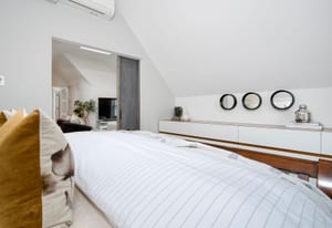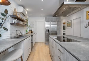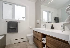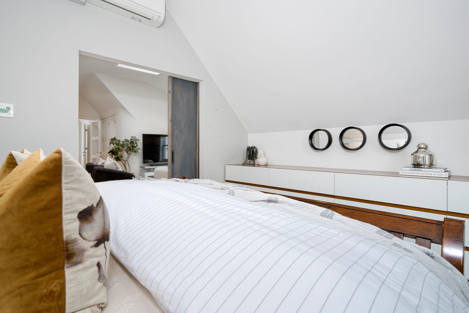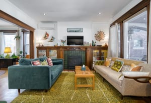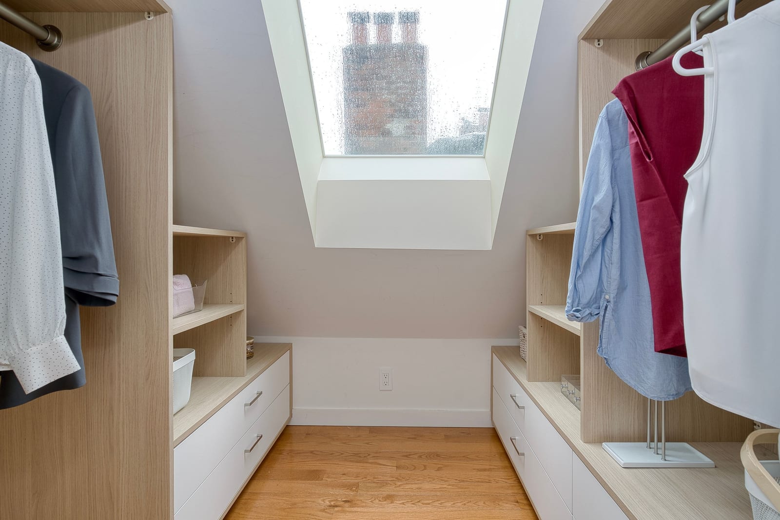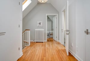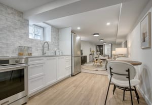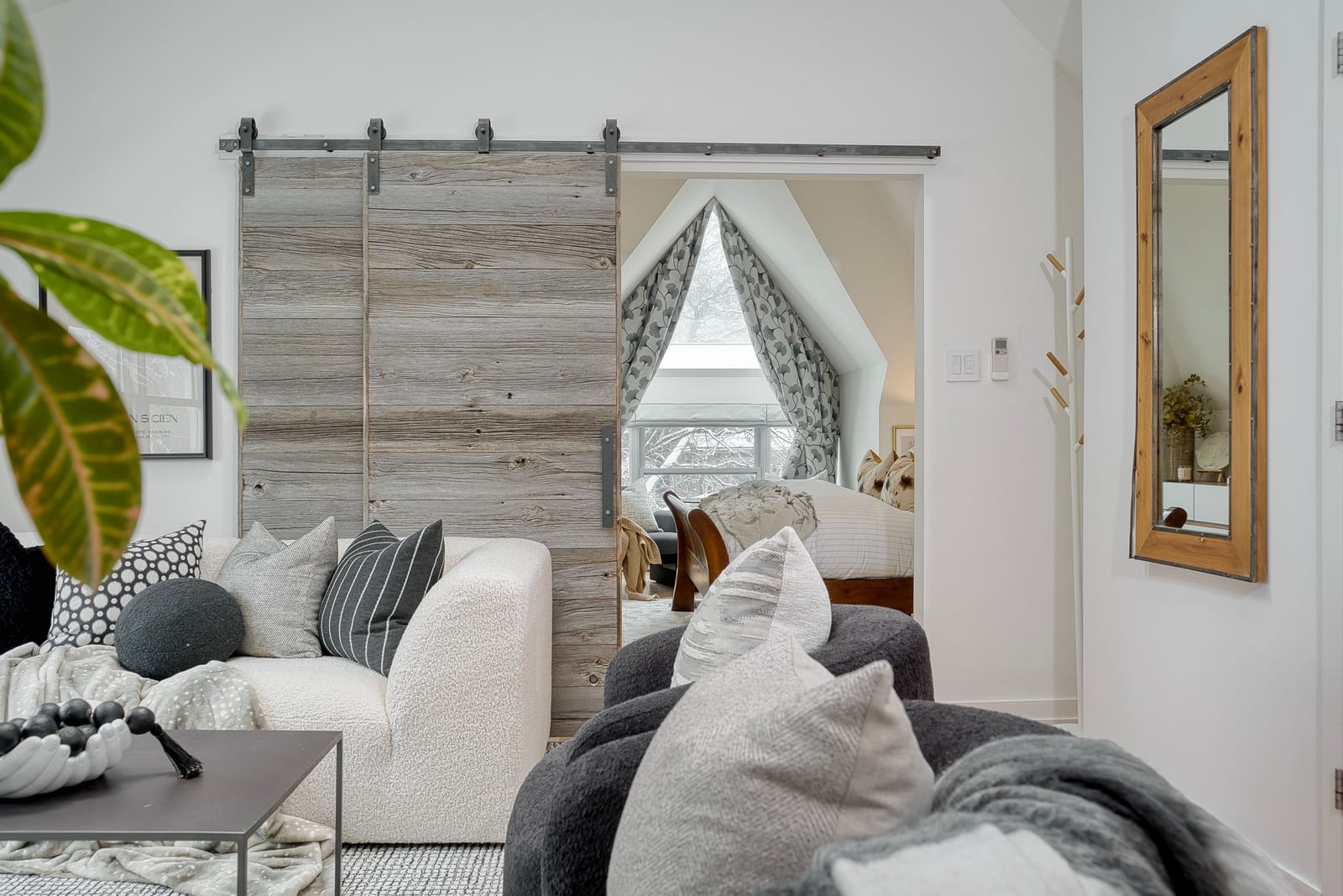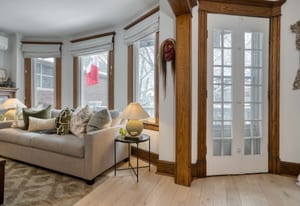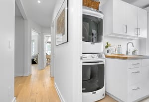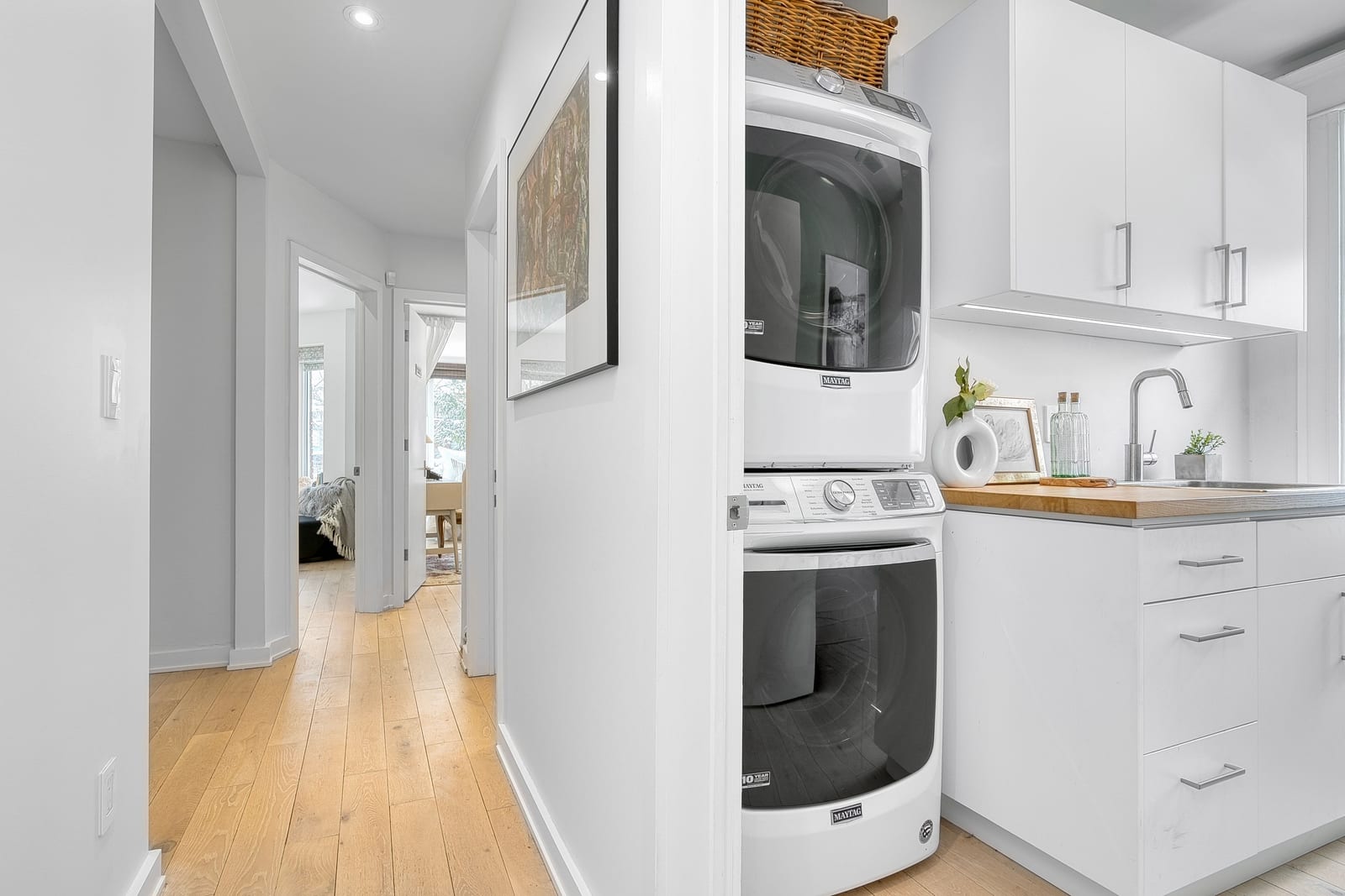 Stunning Arts & Crafts Duplex in High Park! This exquisite detached residence blends timeless architectural character with exceptional modern design, offering approximately 4,200 sq. ft of finished living space across three levels plus a beautifully renovated basement suite. An extraordinary opportunity for multigenerational living, premium rental income, or an expansive owner’s retreat. The main floor showcases classic Arts & Crafts detailing, including original built-ins with leaded glass doors, rich wood trim, and an ornamental fireplace in the formal living room. A separate formal dining room enhances the home’s elegance, while two spacious bedrooms—one ideal as a sunroom or office—and a renovated 4-piece bath complete this level. There are 2 ductless A/C units that cool this main floor unit. The upper suite, spanning the second and third floors, has been fully renovated and thoughtfully designed by renowned Felix Leicher of Baukultur. The chef-inspired kitchen features a large island, integrated appliances (Miele oven and island cooktop), and a walk-in pantry, flowing seamlessly into open-concept living and dining spaces with original woodwork, custom cabinetry, and a gas fireplace. This level also includes two generous east-facing bedrooms with wall-to-wall windows, a powder room, a large laundry room, and abundant storage. The third floor offers two additional spacious bedrooms, including one with a walkout to a private tree-top balcony. The luxurious primary suite impresses with cathedral ceilings, floor-to-ceiling windows, wall-to-wall built-in dressers, and a spa-like 5-piece ensuite. A skylit family room, serene meditation space, additional powder room, and extensive closet space complete this remarkable level. Hardwood floors run throughout, and the owner’s suite is equipped with seven ductless A/C units for optimal comfort. The recently renovated basement suite features a separate entrance, quartz kitchen with new stainless steel appliances, stylish 3-piece bath, and generous living and bedroom areas—currently vacant.