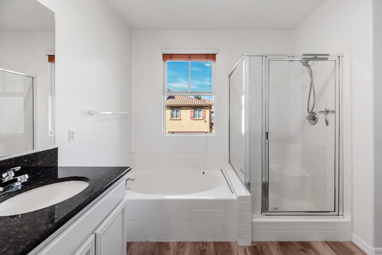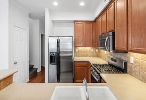 Enjoy luxurious, resort-style living year-round in this light & bright end-unit townhome with no neighbors above or below in The Summit! This move-in-ready 3 bedroom, 2.5 bathroom with attached 2 car garage is clean as a whistle, with new interior paint and tasteful upgrades throughout, including rich wood flooring downstairs with plantation shutters and crown molding. Open floor plan downstairs with powder room and direct access to garage off the rear. Upstairs features three bedrooms and two full bathrooms, including a large primary suite with huge walk-in closet! Also upstairs is a laundry room with washer & dryer that convey with the home. Forced air heating and a new AC unit too. Prime location close to 125, shopping, restaurants & community parks. Pool, spa, clubhouse and fitness center!