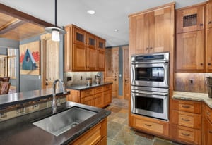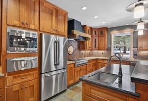Rarely does a home of this caliber become available in Tahoe Donner. Thoughtfully designed, it blends old-world craftsmanship with refined modern finishes. Distressed oak flooring, custom cherry cabinetry, and striking native rock accents create a warm and sophisticated mountain ambiance throughout.
