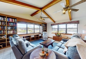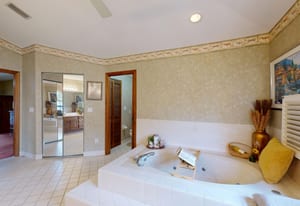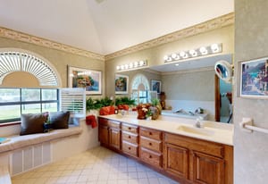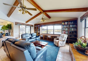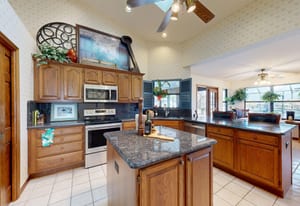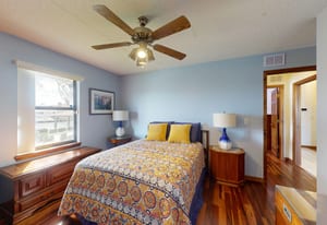 Inside, large windows bring in natural light and frame peaceful canal views from the main living and dining areas. The layout offers three full bathrooms, including a secondary bathroom that can function as a second primary suite, making the home ideal for guests or multi-generational living.