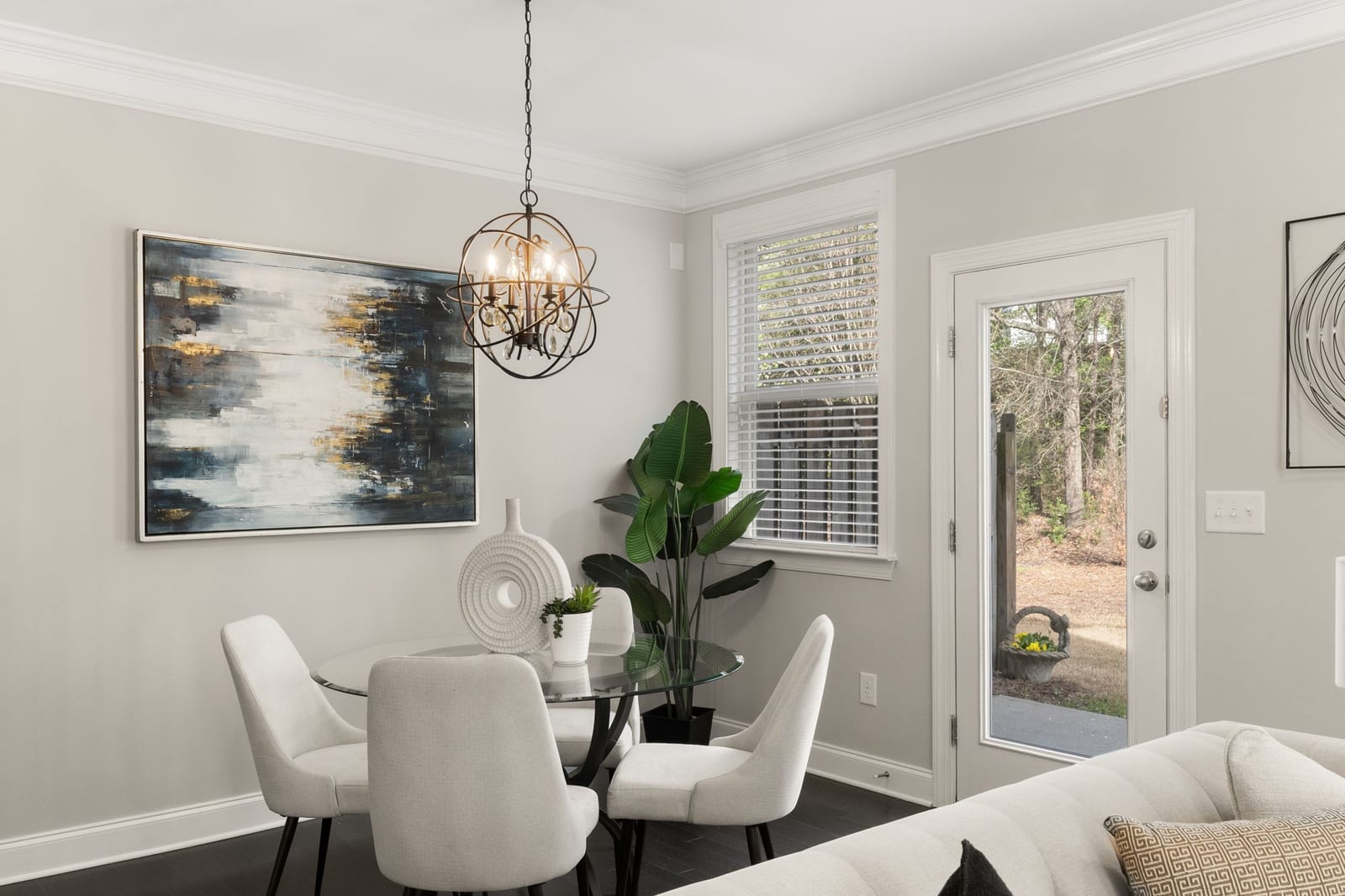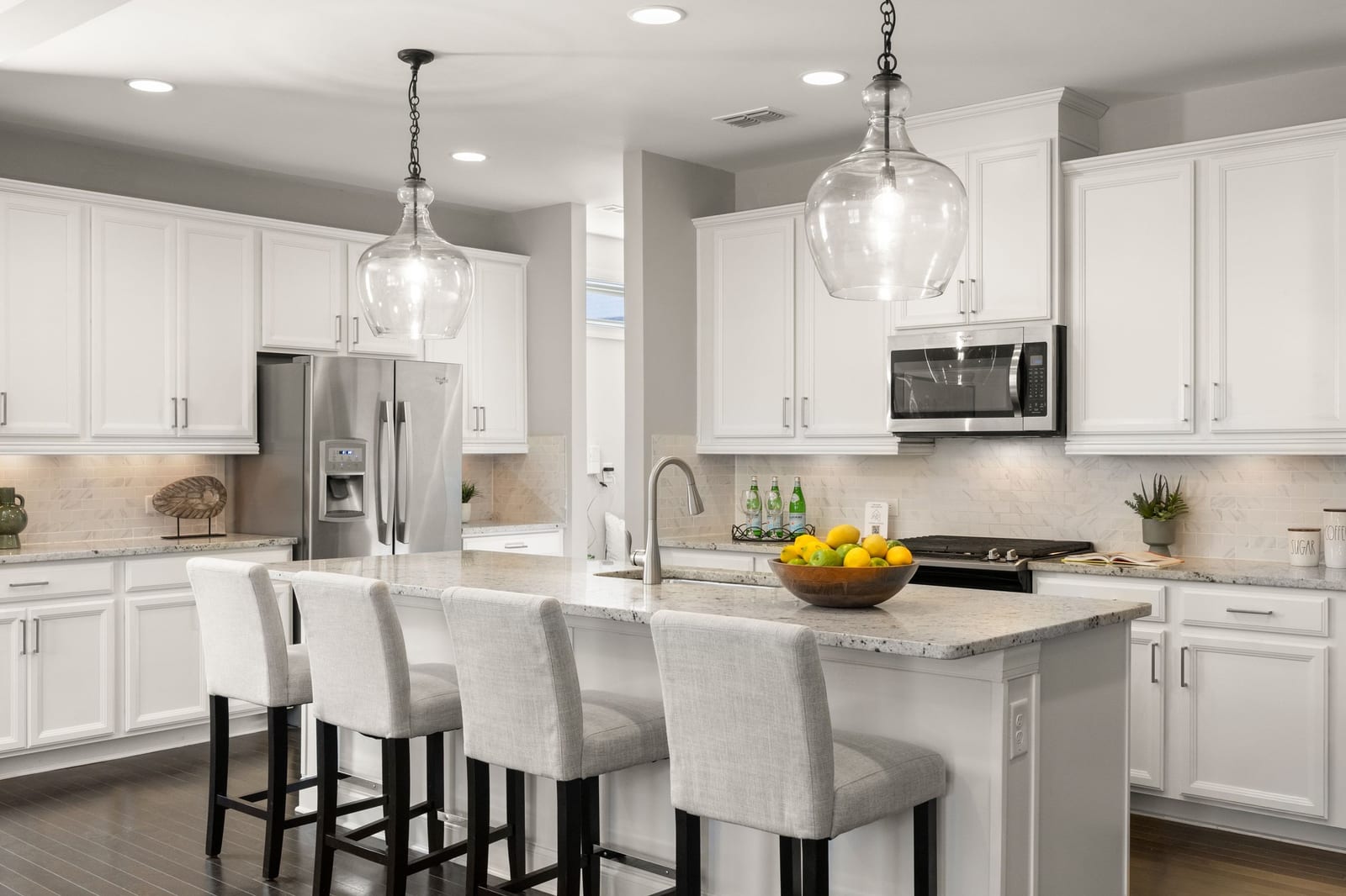 Stunning upgraded townhouse in gated community in sought after Lambert High School District! This end unit townhouse backs up to wooded space and has a private backyard full of songbirds in the mornings and afternoons! The well maintained 4 bedroom 3.5 bathroom townhouse boasts a flowing three story, light filled open floor plan. Freshly painted interior, new carpet on second floor and freshly cleaned carpets on third floor! Enter into the spacious foyer large enough for your buffet, shelving unit or other furniture. The half bath off of the foyer has added wainscoting and mirror. The upgraded gourmet kitchen has stainless steel appliances, granite counter tops, walk in pantry, added under counter lighting, and pull out drawers. The ovesized island features Pottery Barn hanging lights and upgraded with paint and moldings .Open concept floor plan perfect for entertaining boasts additional crown molding in the great room/dining room combination, classic dark hardwood floors on main level, stairs and oversized second story foyer, large enough for sitting area, TV viewing or office. The oversized primary bedroom suite has his and hers walk in closets, tray ceiling, a spacious bathroom with crown molding and a huge custom storage unit with pull out drawers . Two good sized secondary bedrooms with walk in closets share hall bath with dual sinks and shower/tub combination.A good sized laundry room with washer/dryer (included!) and large sink complete the second floor. ...