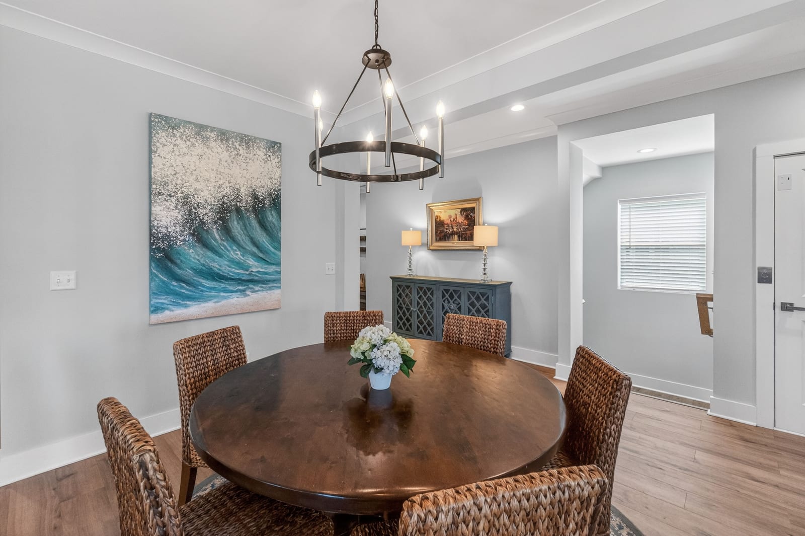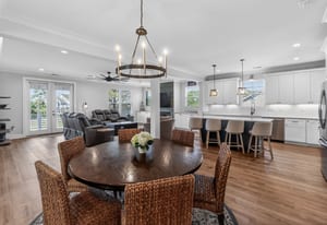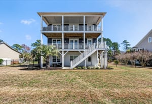 Located in the desirable community of The Cape, this beautifully designed coastal home offers views of the nearby ponds and the Cape Fear River, just minutes from Carolina Beach and downtown Wilmington! High ceilings and abundant natural light create a bright, open feel throughout the main living areas, complemented by luxury vinyl plank flooring and quality finishes. The kitchen features quartz countertops, generous cabinetry, and a large island that flows effortlessly into the living and dining spaces--perfect for entertaining or everyday coastal living!
