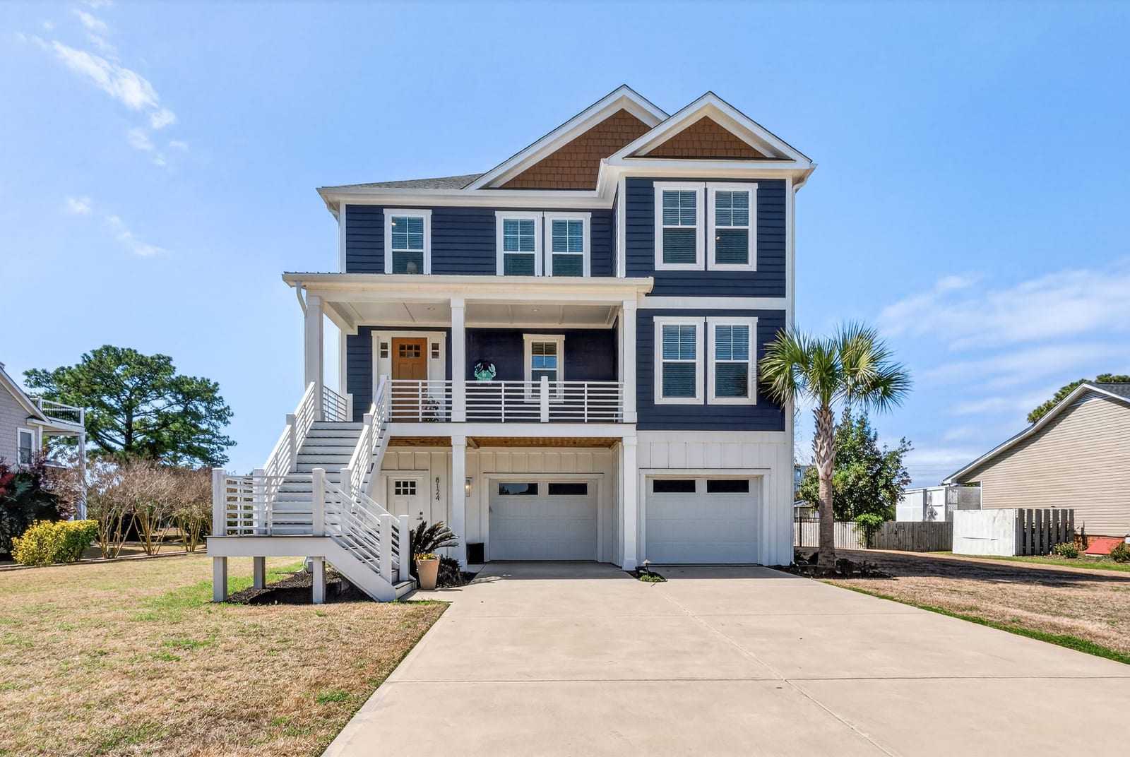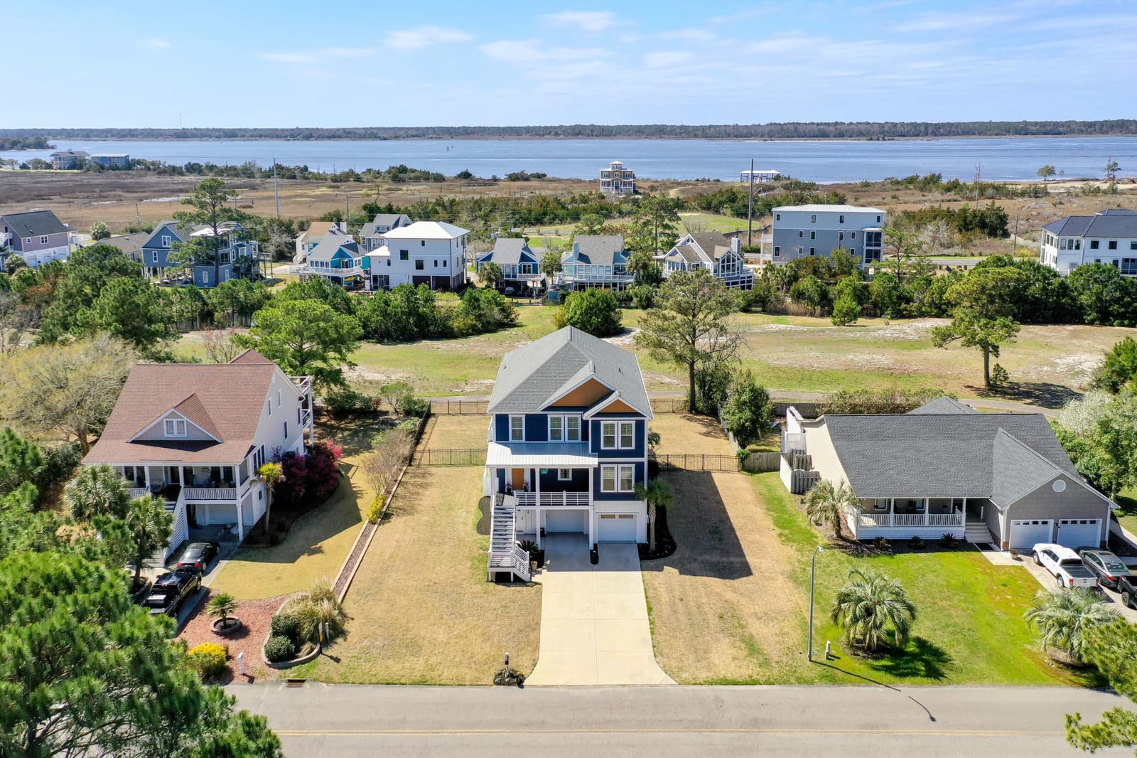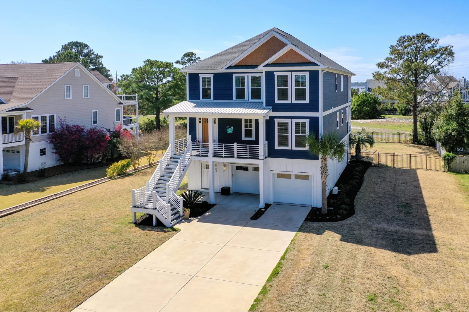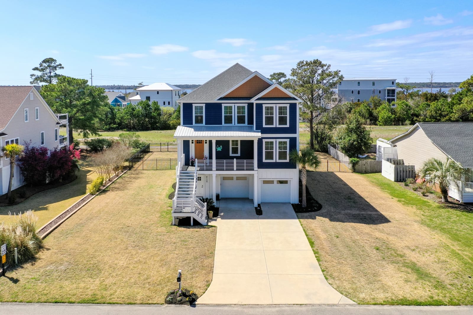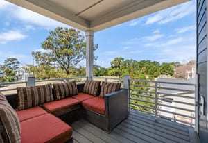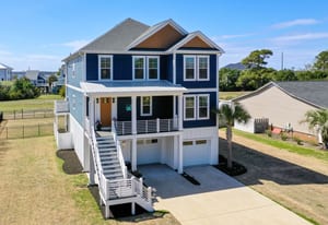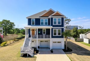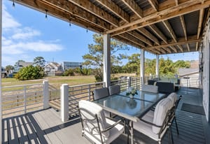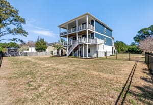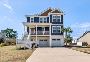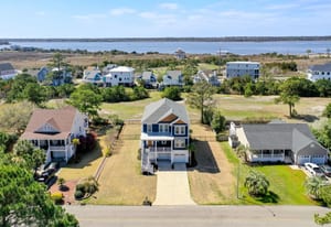 Outdoor living shines with a covered front porch and two spacious rear decks finished with low-maintenance composite decking, along with a concrete patio below--ideal for gatherings, grilling, or enjoying the coastal breeze! The fenced yard offers space for pets, gardening, or play. Additional features include a convenient elevator, irrigation system, generator hookup, and an expansive four-car tandem style garage beneath the home.