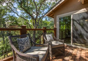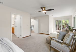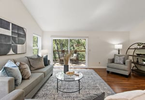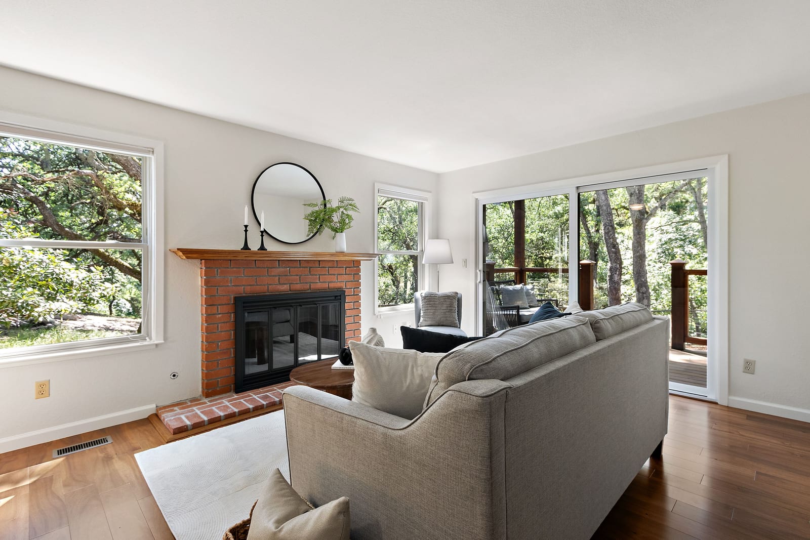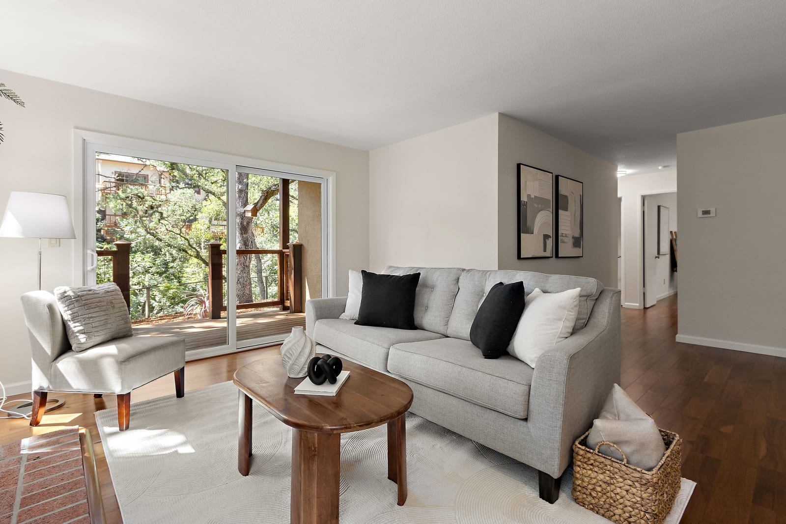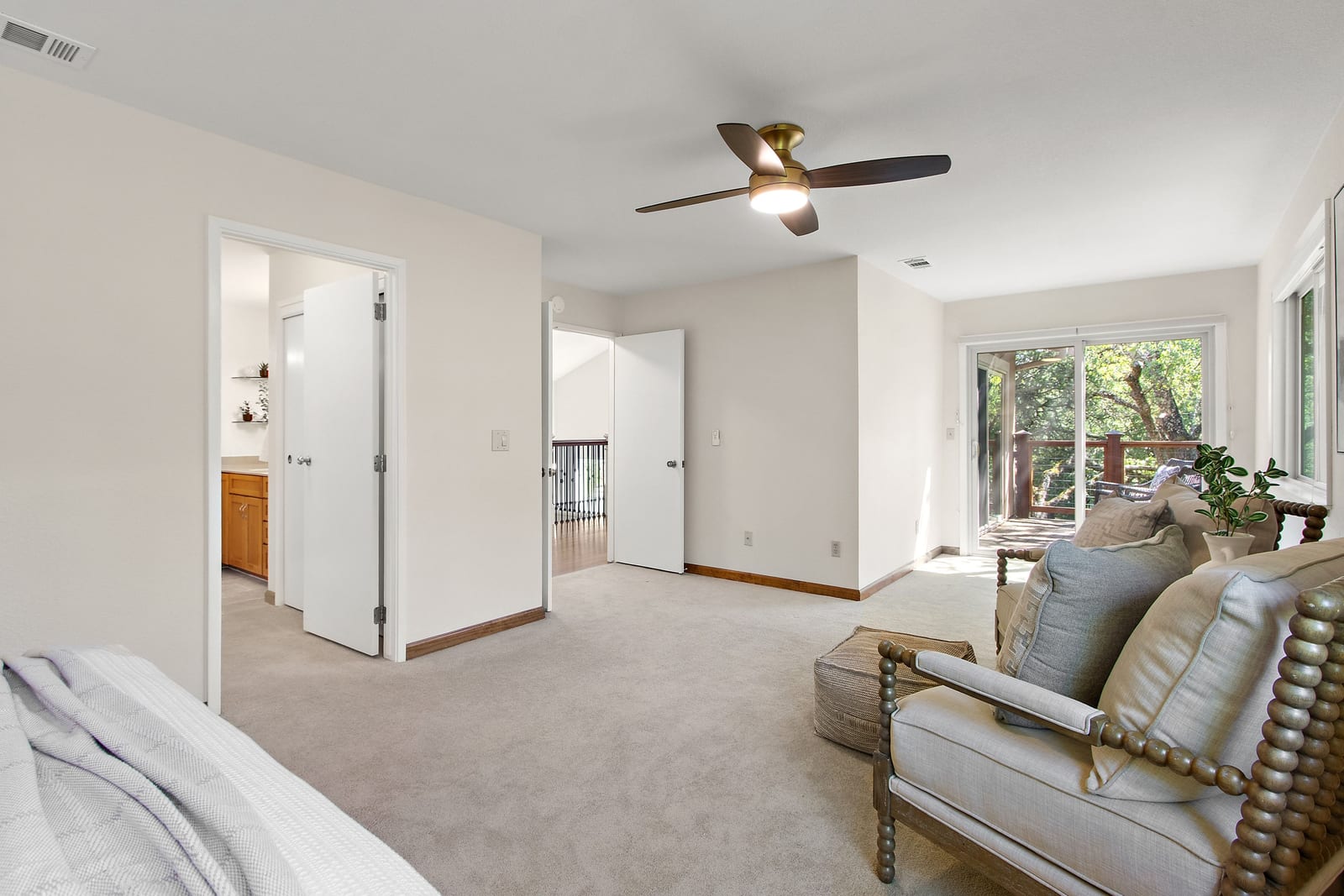 The versatile layout is ideal for a variety of living situations, featuring all secondary bedrooms and a spacious second living area on the lower level—perfect for guests, extended family, or a private retreat. A cozy den with direct access to the back deck and patio adds even more flexibility for a home office, media room, or relaxation space. Upstairs, the private primary suite offers a peaceful escape, thoughtfully separated from the rest of the home for added comfort. The living room opens to a balcony with a pleasant view, creating a seamless indoor-outdoor connection and an inviting place to unwind.
