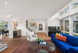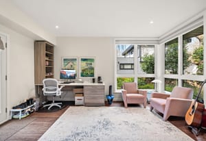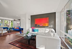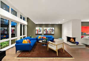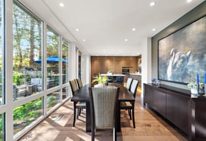 Architecturally reimagined in 2019 with Sawyer Construction's renowned craftsmanship, this family home presents a sophisticated mid-century modern composition defined by clean lines, considered proportions, and an elemental connection to the landscape. Lantern-style windows in the main living room draw in abundant natural light while framing the surrounding greenery, creating a serene interplay between interior and exterior. Refined finishes & elevated functionality are carried throughout, including maple wood floors, a centrepiece wood-burning fireplace, and a chef’s kitchen appointed with Sub-Zero refrigerator, Fisher & Paykel appliances, a steam oven, and ...