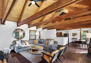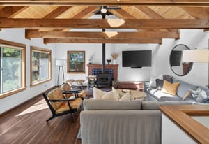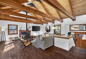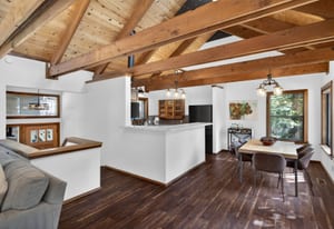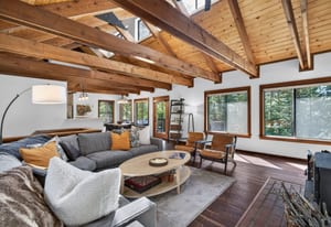 Beautiful, extensively remodeled Tahoe Donner cabin nestled in a peaceful forest setting. This inviting home features a well-designed open-concept floor plan with a spacious kitchen, dining, and living area filled with abundant natural light. Ideally located on a quiet, lower-elevation street, the property offers a newly improved level driveway and sits on over one-third acre, backing to a peaceful wooded and private yard.