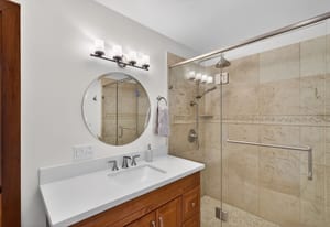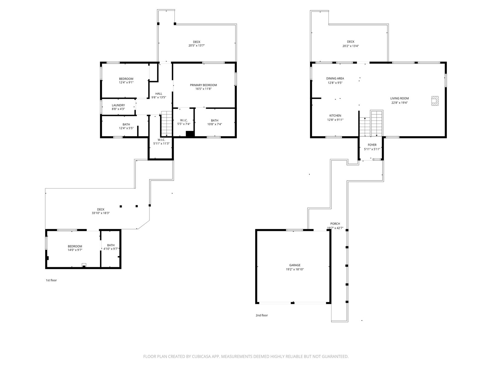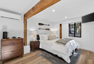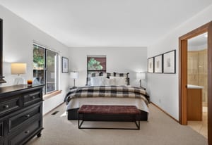 The home showcases a thoughtfully updated kitchen with a new refrigerator and induction range, along with remodeled bathrooms, a newer furnace, and roof. The detached garage includes a private bedroom suite below, complete with a full bath and its own deck—perfect for guests or added flexibility. Ample storage is available beneath both the home and garage.