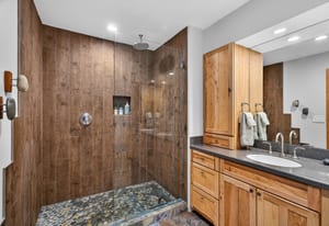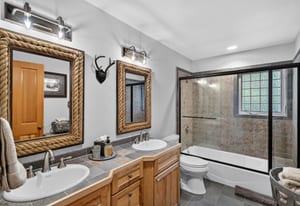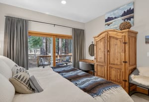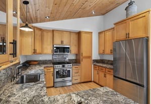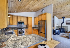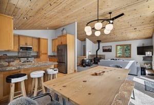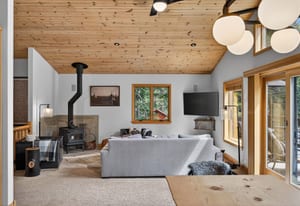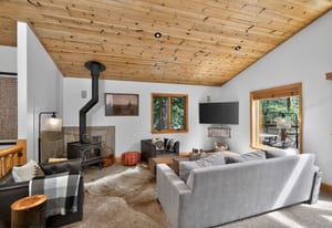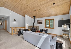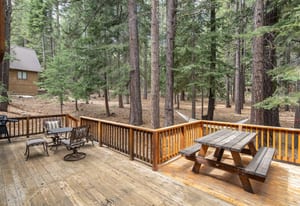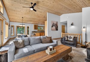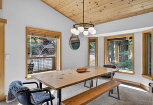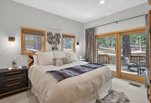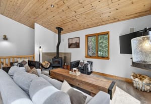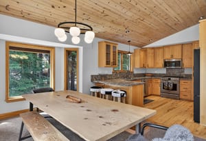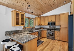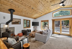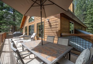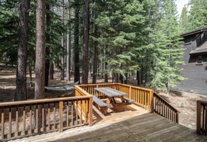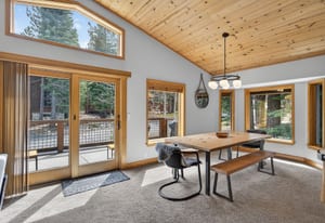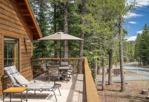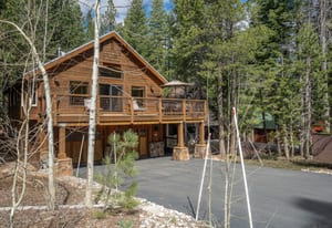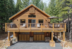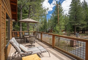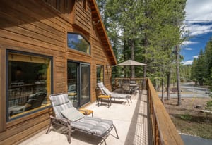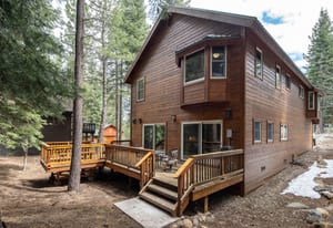 A beautiful mountain chalet located in desirable lower Tahoe Donner, ideally situated on a serene greenbelt at the end of a quiet cul-de-sac. This spacious split-level design features a beautifully remodeled kitchen and an inviting great room with dining area, opening to a sunny upper deck—perfect for indoor-outdoor living. The upper level offers a primary suite along with two additional bedrooms. Downstairs, enjoy a generous family room with gas fireplace, large fourth bedroom, full bathroom, and laundry area—providing excellent flexibility and space for family and guests. A spacious lower deck overlooks the private, forested setting. The level, sun-exposed driveway ensures convenient year-round access. A wonderful place to call home.