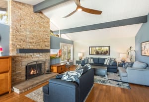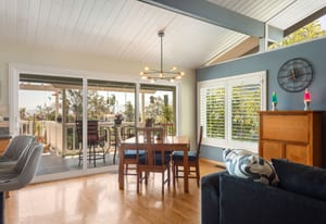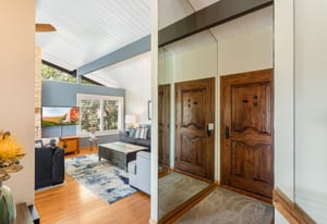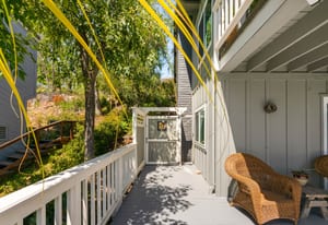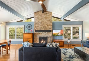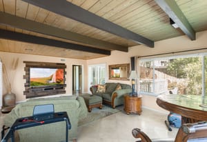 Flooded with natural light, the 2,100 sq ft main residence features an open-concept layout with the kitchen and living areas flowing effortlessly to a wrap-around deck, creating ideal indoor/outdoor living. Nearly every room captures stunning views and offers direct outdoor access. The main level showcases a mid-century modern feel with clean lines, quality wood flooring, an upgraded kitchen, primary bedroom and a remodeled primary bath. The lower level includes two bedrooms and a spacious secondary living area, all opening to patio spaces and serene views. There is also a finished artists retreat/bedroom with separate entrance that has easy access to plumbing and sewer for the potential to create another rentable area.