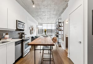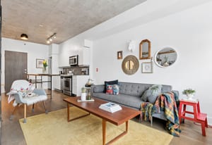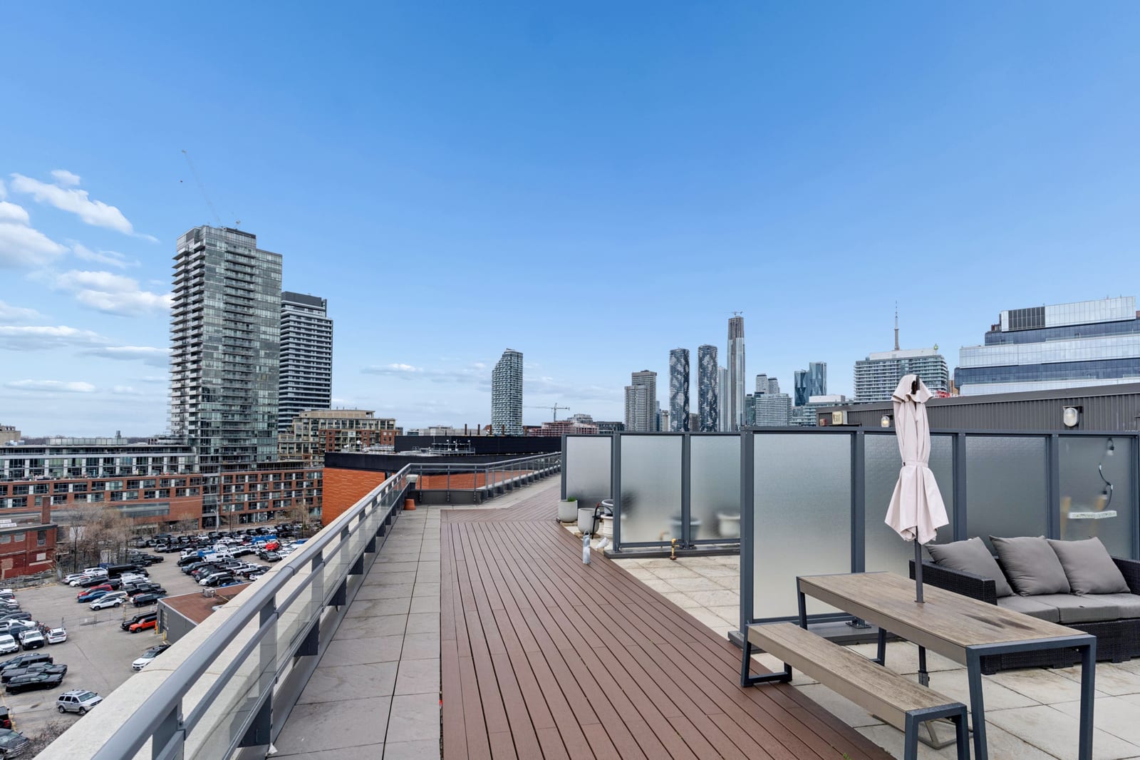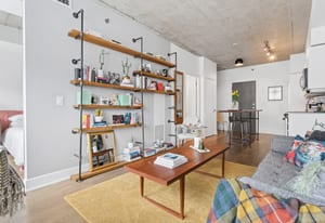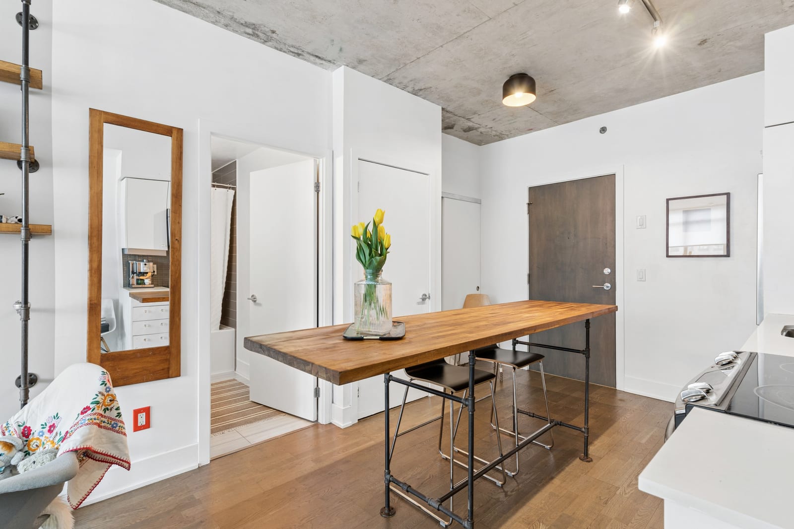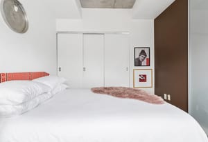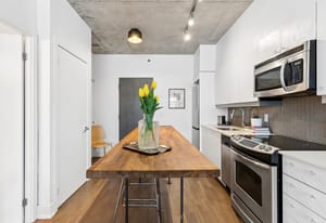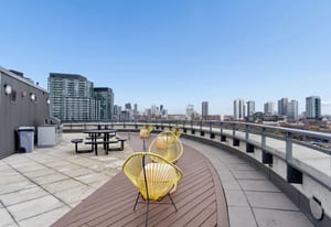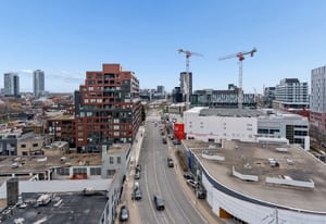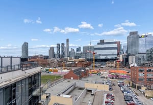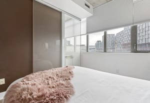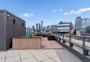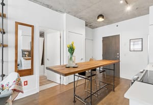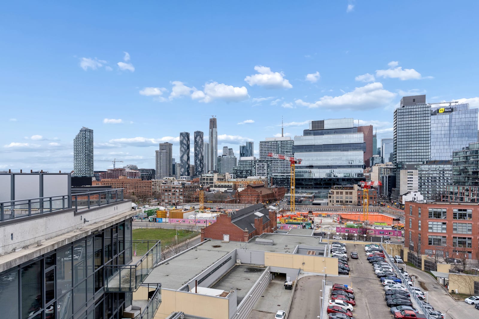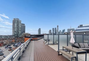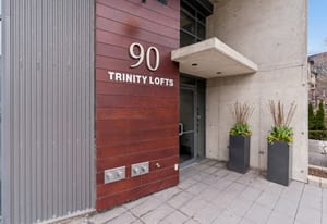Stylish one-bedroom suite in the sought-after Trinity Lofts, perfectly situated directly across from the vibrant Distillery District. This boutique 8-storey building offers an intimate urban living experience in one of the city's most desirable neighbourhoods, with Corktown at your doorstep and just an 8-minute walk to St. Lawrence Market. This bright and sunny 518 sq ft unit (as per builder's plan) features impressive 9-ft exposed concrete ceilings, pre-finished laminate flooring, and a thoughtfully designed open-concept layout. The modern kitchen is equipped with stainless steel appliances, while the sleek bathroom adds a contemporary touch. Ideal for professionals or first-time buyers seeking convenience, and character in a primedowntown location.
