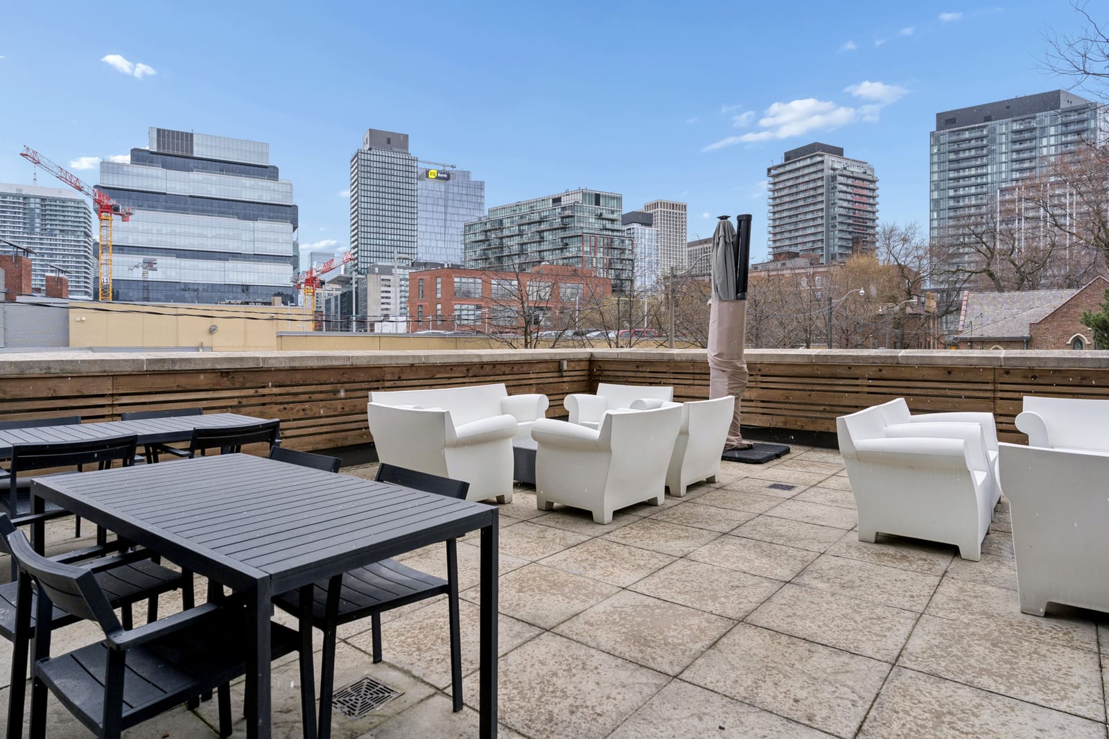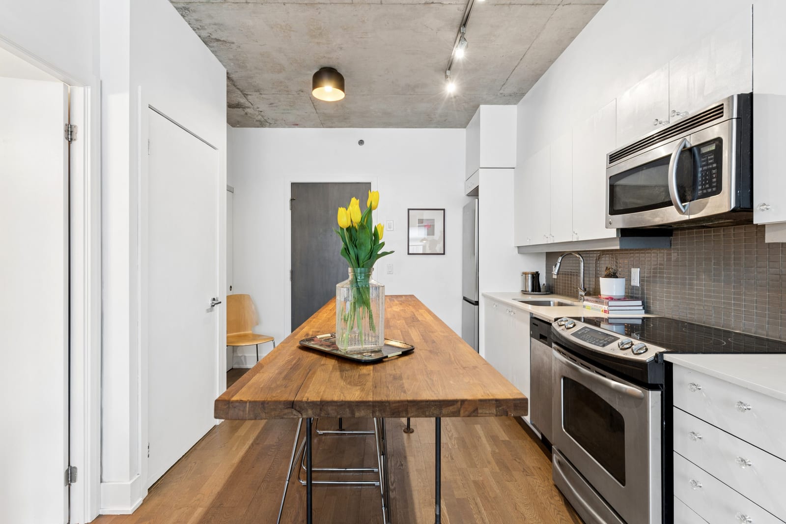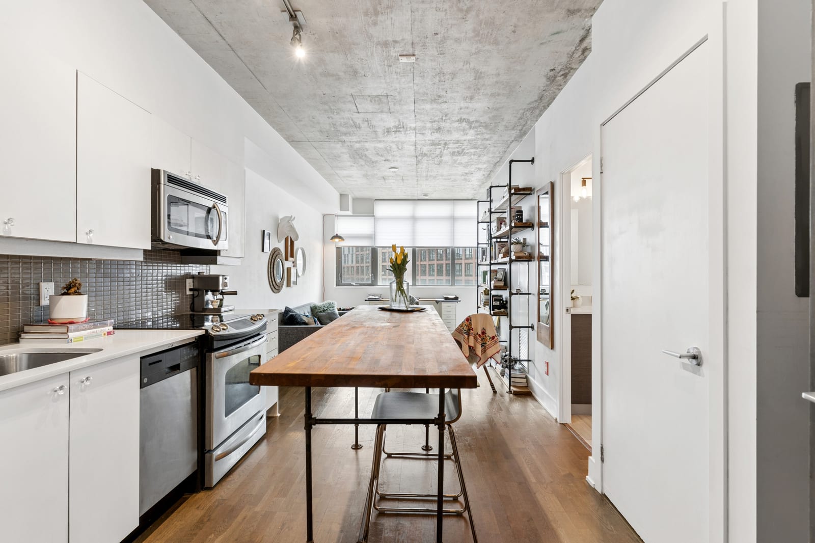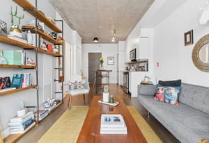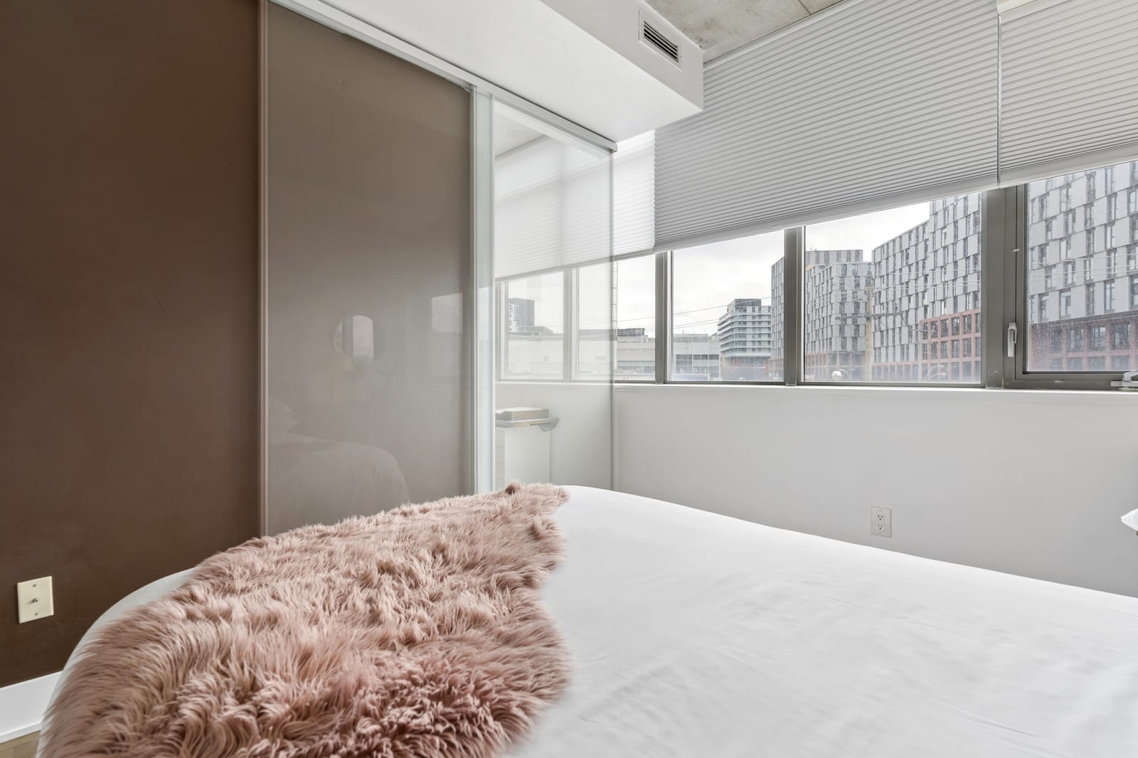 Stylish one-bedroom suite in the sought-after Trinity Lofts, perfectly situated directly across from the vibrant Distillery District. This boutique 8-storey building offers an intimate urban living experience in one of the city's most desirable neighbourhoods, with Corktown at your doorstep and just an 8-minute walk to St. Lawrence Market. This bright and sunny 518 sq ft unit (as per builder's plan) features impressive 9-ft exposed concrete ceilings, pre-finished laminate flooring, and a thoughtfully designed open-concept layout. The modern kitchen is equipped with stainless steel appliances, while the sleek bathroom adds a contemporary touch. Ideal for professionals or first-time buyers seeking convenience, and character in a primedowntown location.