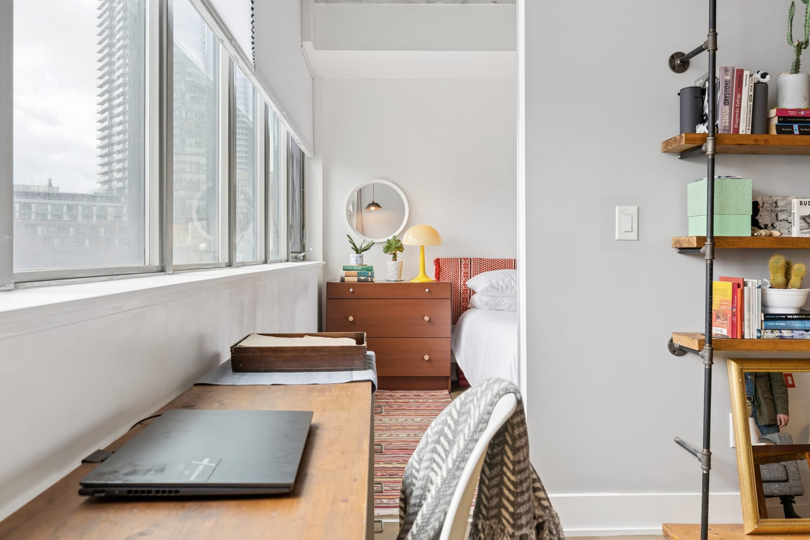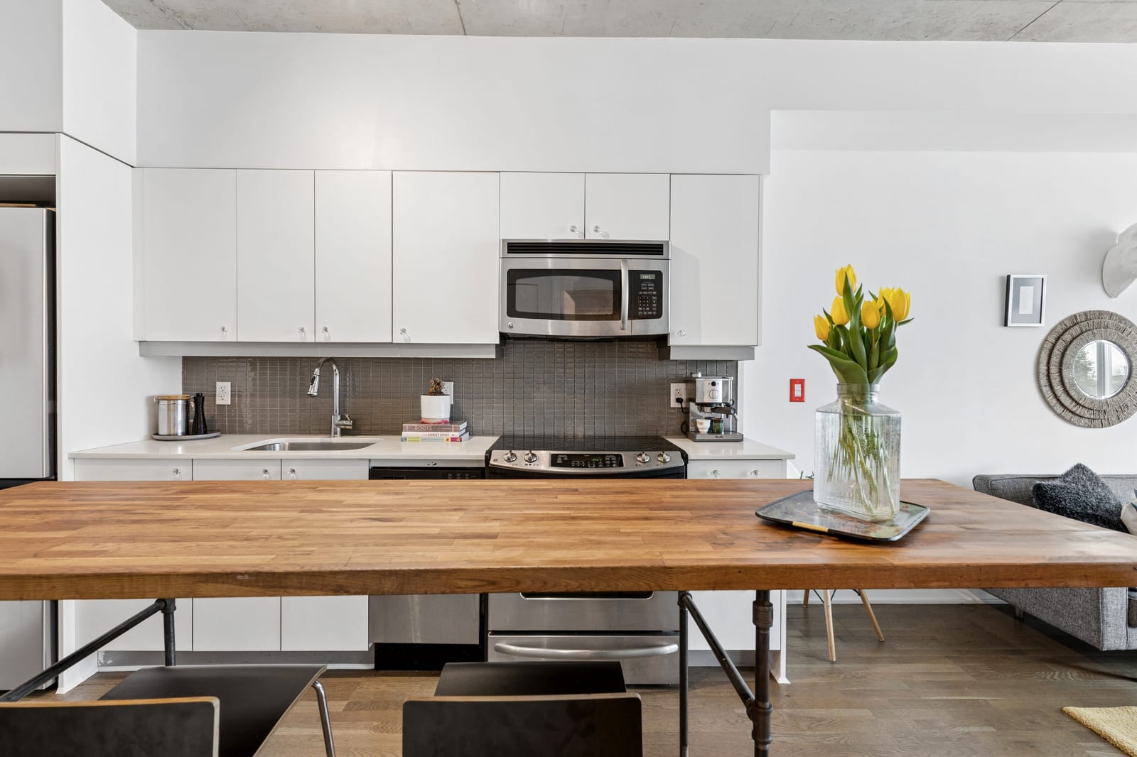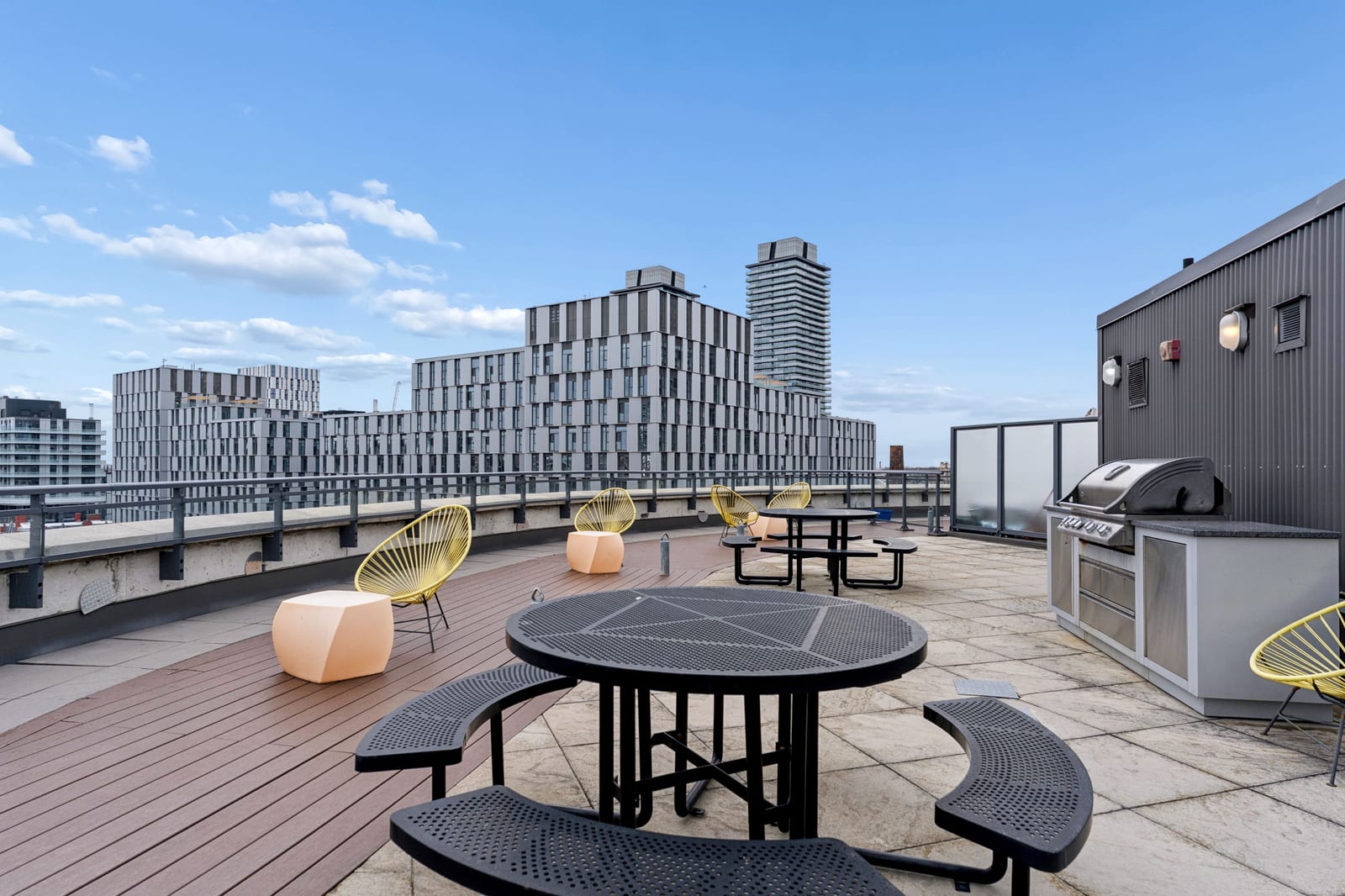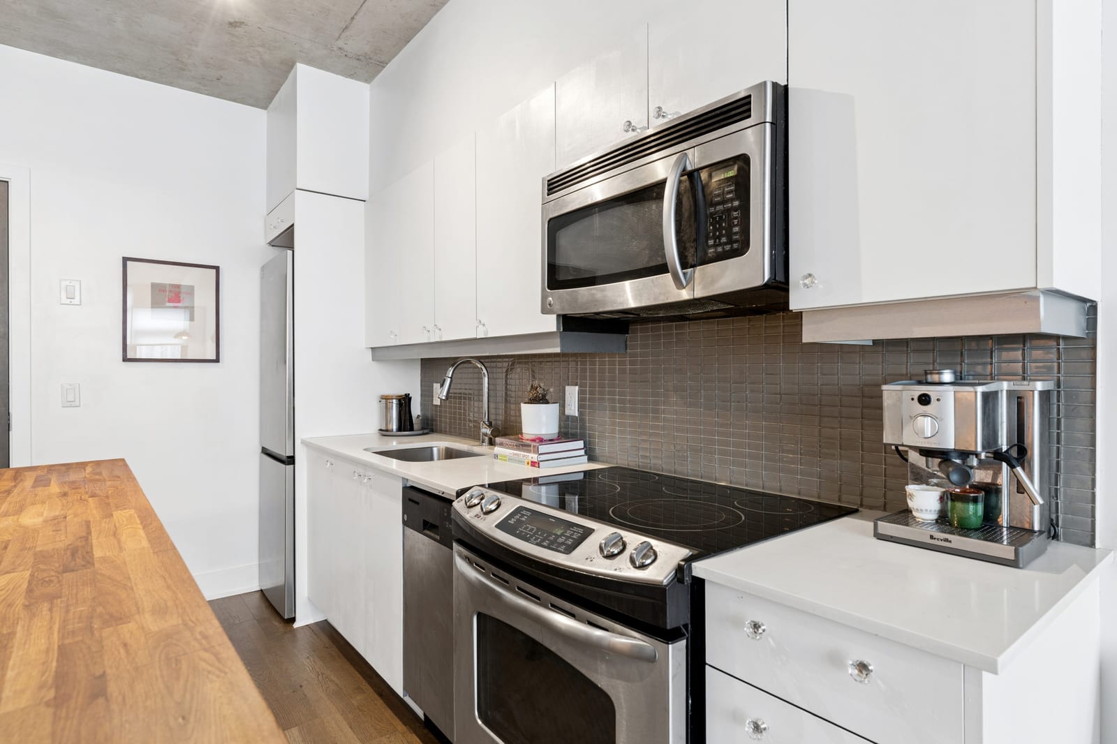 Stylish one-bedroom suite in the sought-after Trinity Lofts, perfectly situated directly across from the vibrant Distillery District. This boutique 8-storey building offers an intimate urban living experience in one of the city's most desirable neighbourhoods, with Corktown at your doorstep and just an 8-minute walk to St. Lawrence Market. This bright and sunny 518 sq ft unit (as per builder's plan) features impressive 9-ft exposed concrete ceilings, pre-finished laminate flooring, and a thoughtfully designed open-concept layout. The modern kitchen is equipped with stainless steel appliances, while the sleek bathroom adds a contemporary touch. Ideal for professionals or first-time buyers seeking convenience, and character in a primedowntown location.