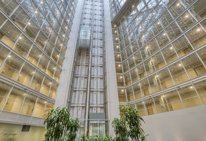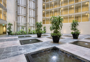 the luminous 16 storey atrium with 9 flowing fountains + always friendly and helpful