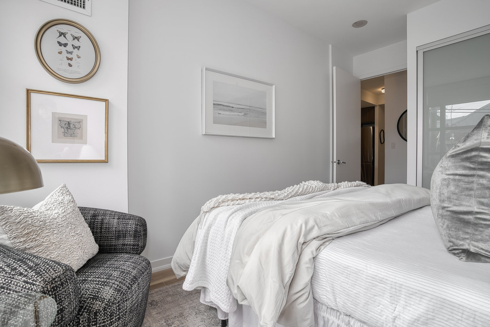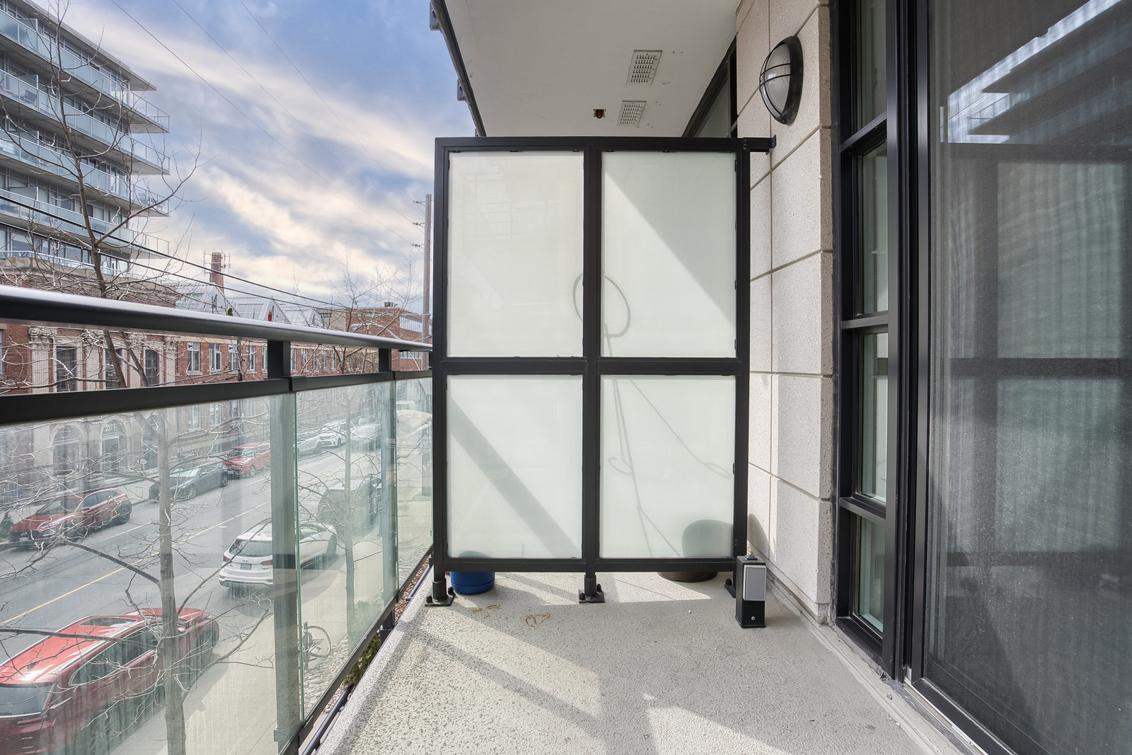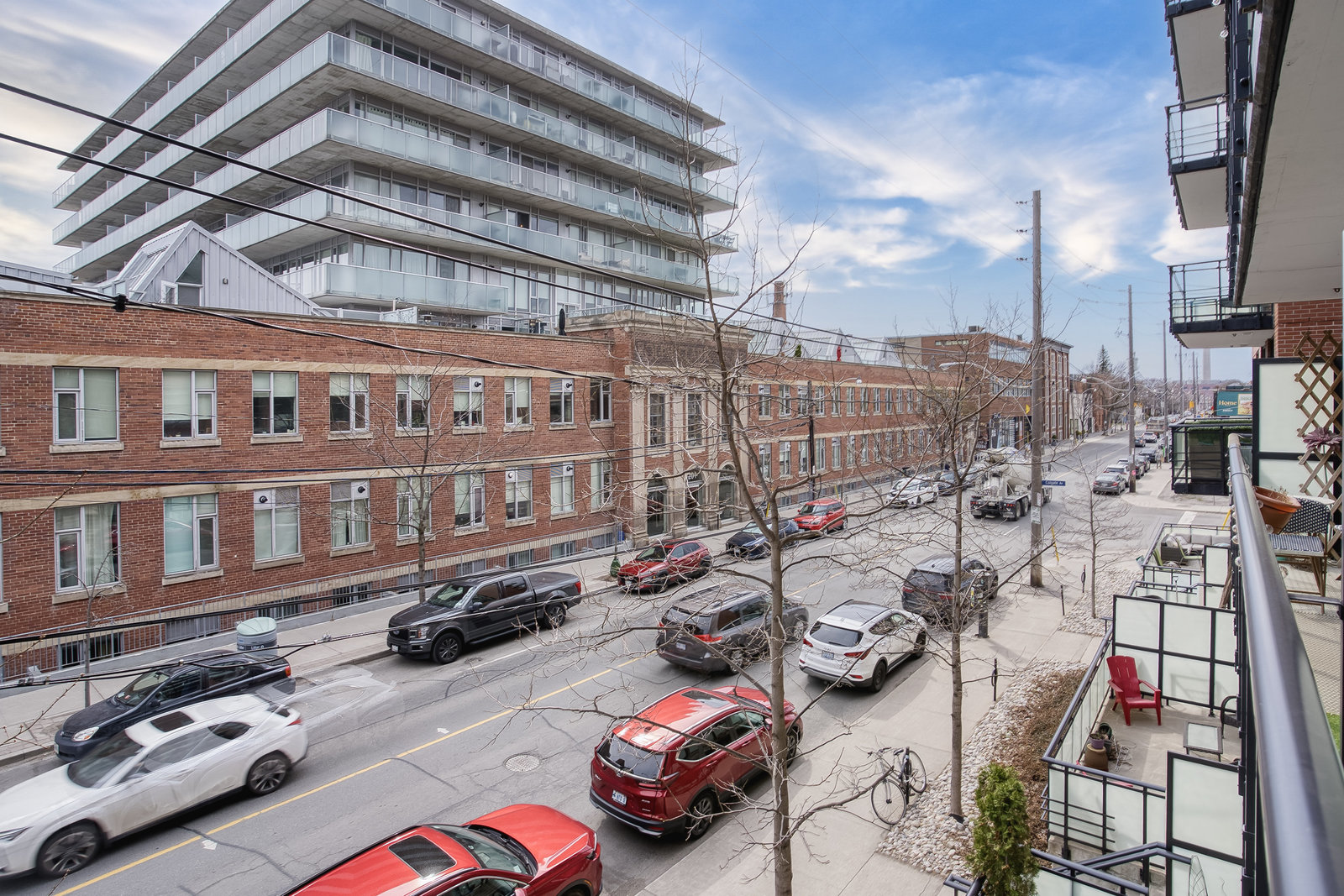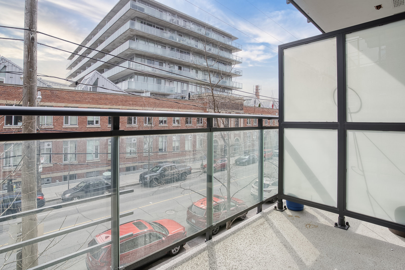 Stylish 1-Bedroom Loft at Showcase Lofts in Prime Leslieville! One of Leslieville’s most desirable boutique buildings. This spacious and thoughtfully upgraded 1-bedroom suite blends industrial character with modern comforts in a prime east-end location. A reclaimed brick feature wall sets the tone in the open-concept living area, complemented by wide-plank engineered hardwood flooring (2019) and custom dual-layer blinds (blackout + privacy) throughout. The sleek kitchen boasts quartz countertops, a breakfast bar, new tile flooring, and stainless steel appliances — including a brand-new gas range, microwave/exhaust fan, and dishwasher — plus a deep sink and ample counter and cupboard space. The bright bedroom offers wall-to-wall windows, a full double closet, and a serene, leafy outlook. The spa-like 4-piece bath features a deep soaker tub and ceramic tile floors. Enjoy the peaceful vibes from your east-facing balcony, where a mature tree offers natural privacy and greenery. Additional upgrades include a new washer, dryer, and stainless steel fridge (2019). This unit also comes with 1 parking space and 1 locker. Situated just steps to Queen St. E., TTC transit, parks, top-rated restaurants, indie cafes, and unique boutiques, this home puts you right in the heart of Leslieville — one of Toronto’s most vibrant and sought-after neighbourhoods. Don't miss this rare opportunity to own in a well-managed, pet-friendly building with low fees and great amenities including a gym, theatre room, and party lounge.