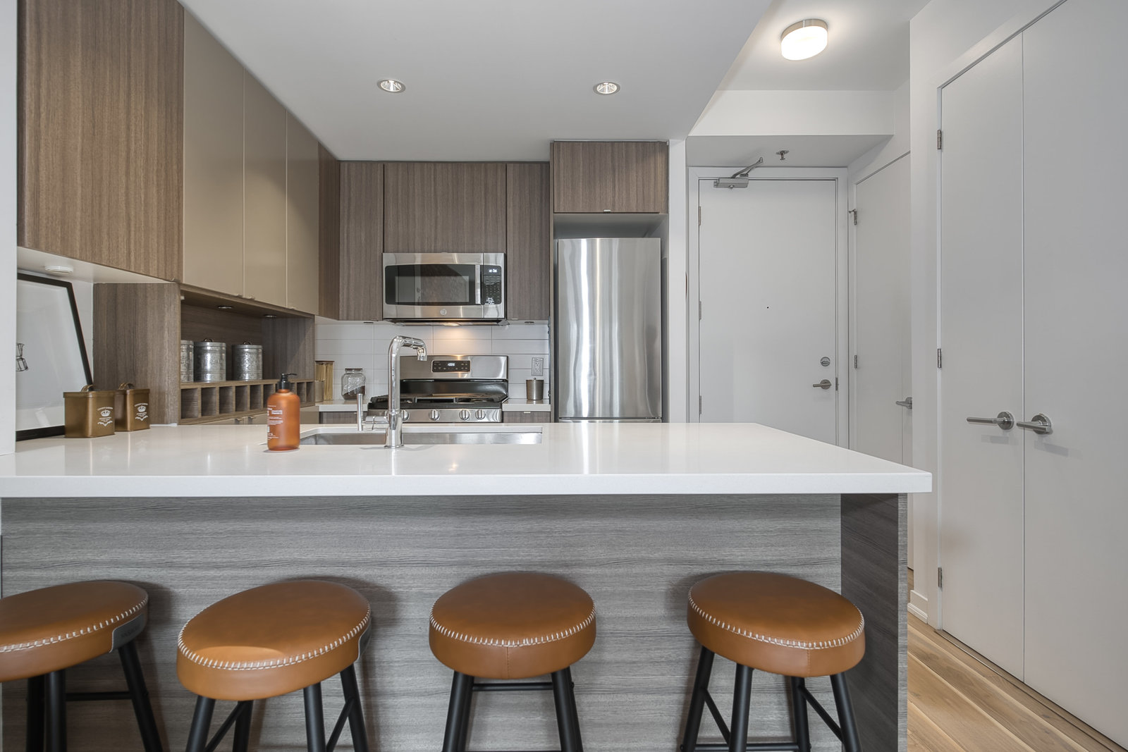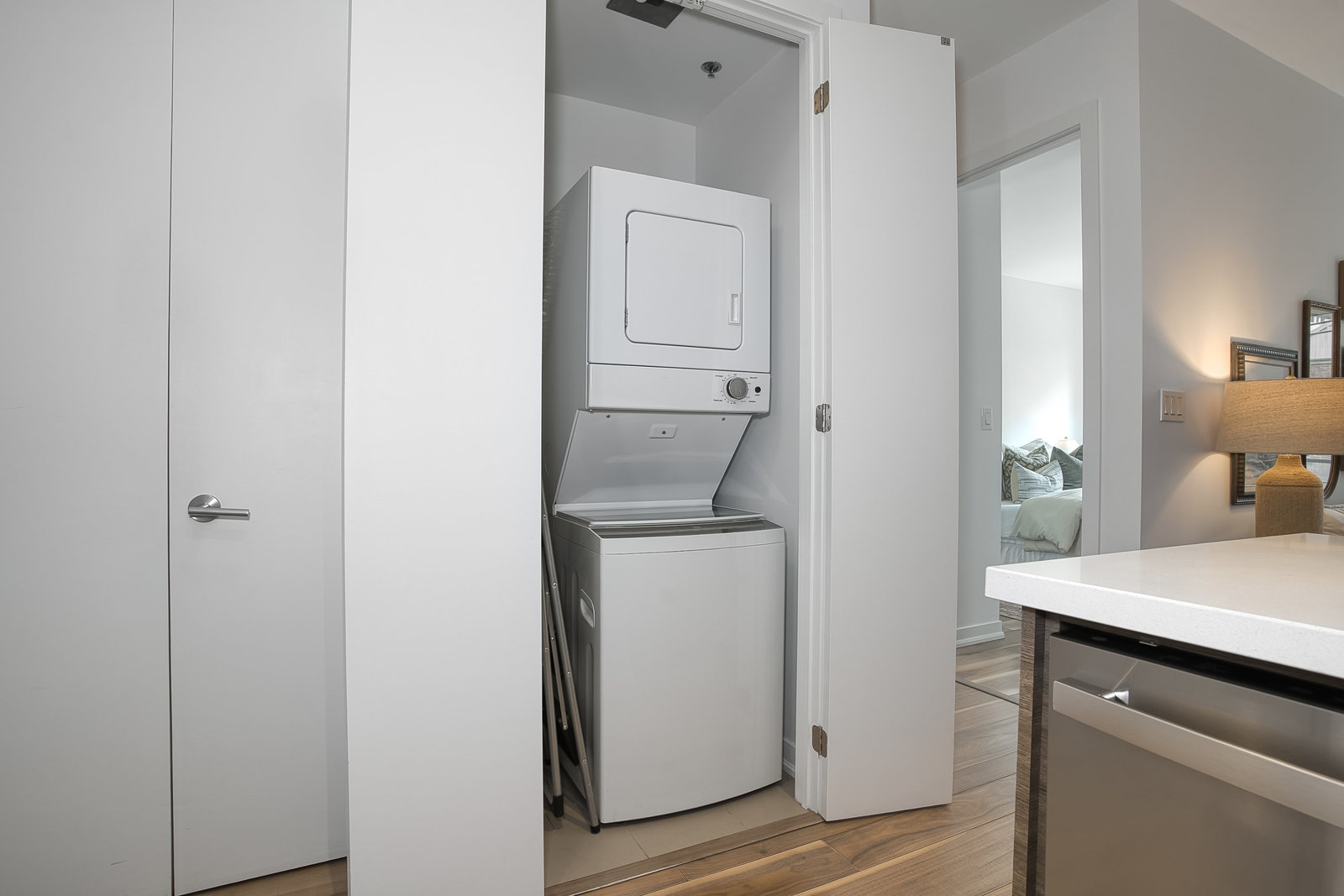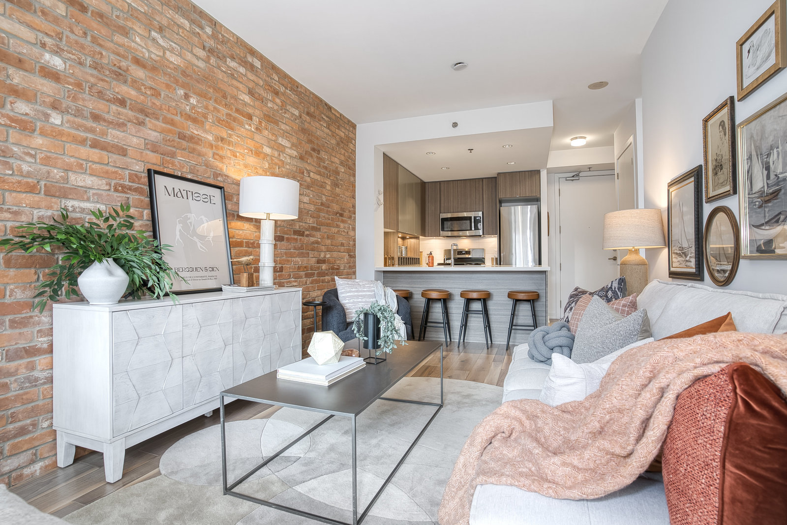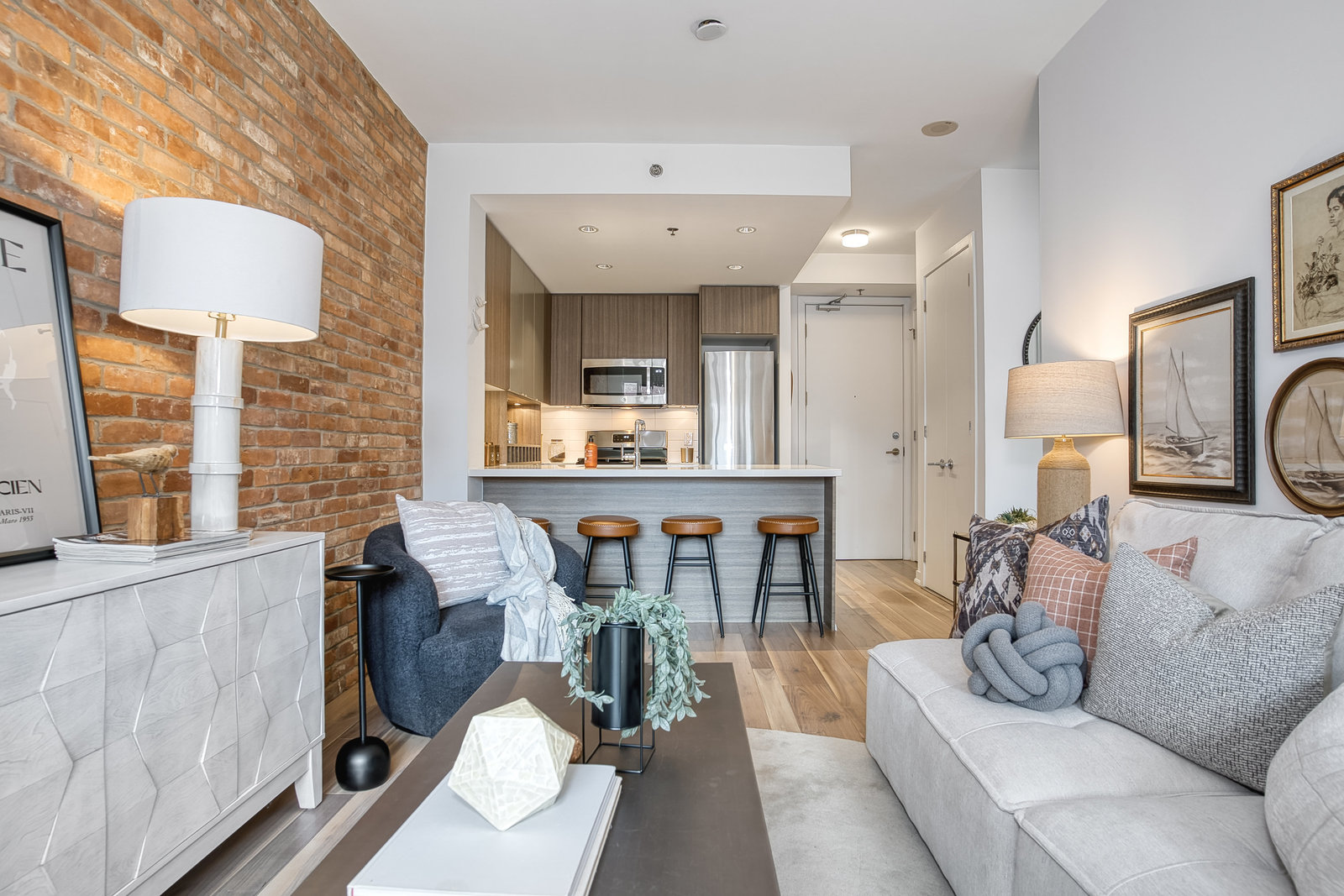 Stylish 1-Bedroom Loft at Showcase Lofts in Prime Leslieville! One of Leslieville’s most desirable boutique buildings. This spacious and thoughtfully upgraded 1-bedroom suite blends industrial character with modern comforts in a prime east-end location. A reclaimed brick feature wall sets the tone in the open-concept living area, complemented by wide-plank engineered hardwood flooring (2019) and custom dual-layer blinds (blackout + privacy) throughout. The sleek kitchen boasts quartz countertops, a breakfast bar, new tile flooring, and stainless steel appliances — including a brand-new gas range, microwave/exhaust fan, and dishwasher — plus a deep sink and ample counter and cupboard space. The bright bedroom offers wall-to-wall windows, a full double closet, and a serene, leafy outlook. The spa-like 4-piece bath features a deep soaker tub and ceramic tile floors. Enjoy the peaceful vibes from your east-facing balcony, where a mature tree offers natural privacy and greenery. Additional upgrades include a new washer, dryer, and stainless steel fridge (2019). This unit also comes with 1 parking space and 1 locker. Situated just steps to Queen St. E., TTC transit, parks, top-rated restaurants, indie cafes, and unique boutiques, this home puts you right in the heart of Leslieville — one of Toronto’s most vibrant and sought-after neighbourhoods. Don't miss this rare opportunity to own in a well-managed, pet-friendly building with low fees and great amenities including a gym, theatre room, and party lounge.