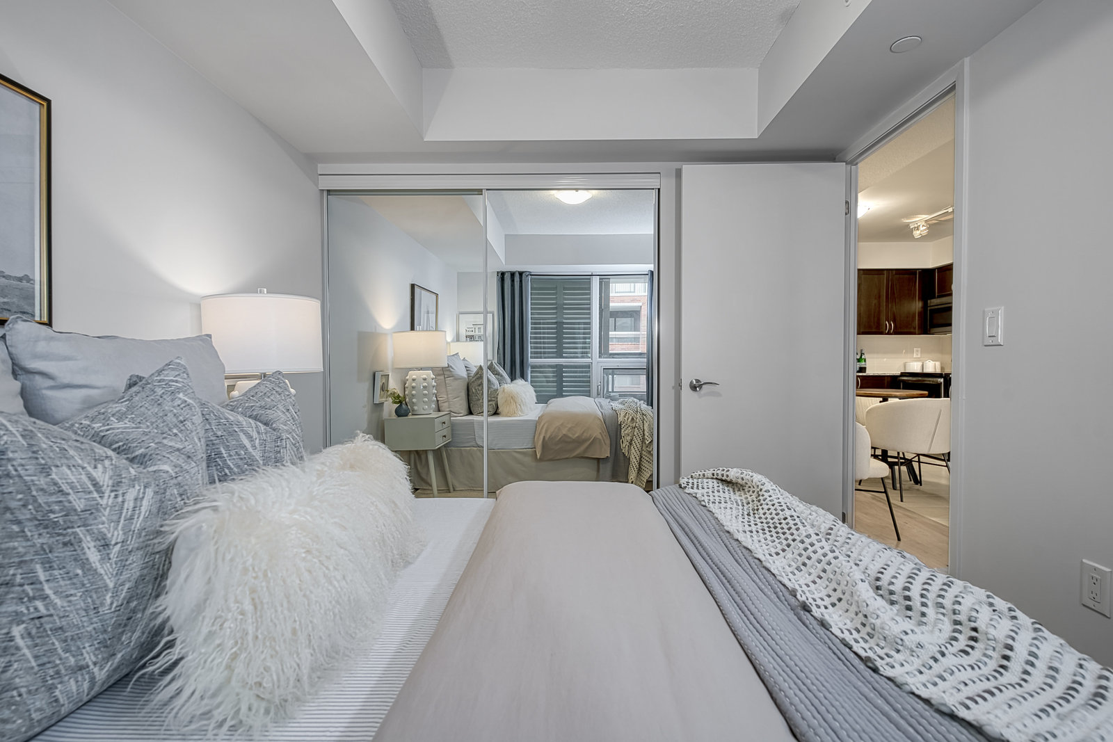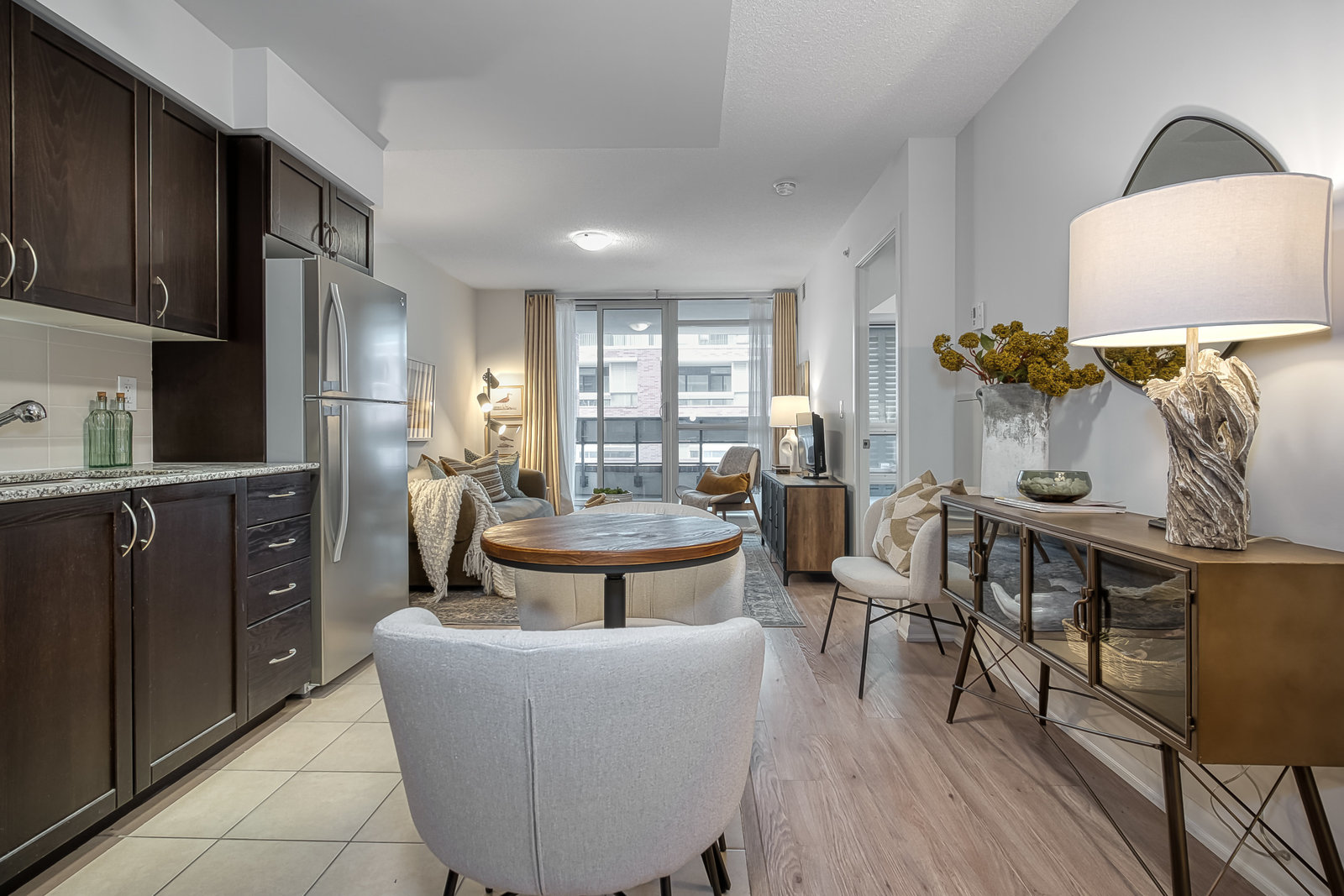 Fabulous condo in the sought-after Treviso II, perfectly situated in the heart of North York! This stunning 1-bedroom + den unit boasts sleek laminate flooring in the main living areas, plush broadloom in the bedroom, and a bright, open-concept layout that seamlessly combines the kitchen and living room for a warm and contemporary vibe. The spacious bedroom offers plenty of room to relax, while the large den is ideal for a home office, guest space, or additional living area. Step outside to your private, oversized balcony - perfect for entertaining. Complete with 1 underground parking spot and a convenient locker, this unit truly has it all. Commuters will love the TTC right at your doorstep, just a short walk to Lawrence Subway Station, and easy access to Yorkdale Shopping Centre and major highways (401/400). Treviso II is known for its top-notch amenities, including a 24-hour concierge, indoor pool, sauna, fully equipped gym, guest suites, visitor parking, and more