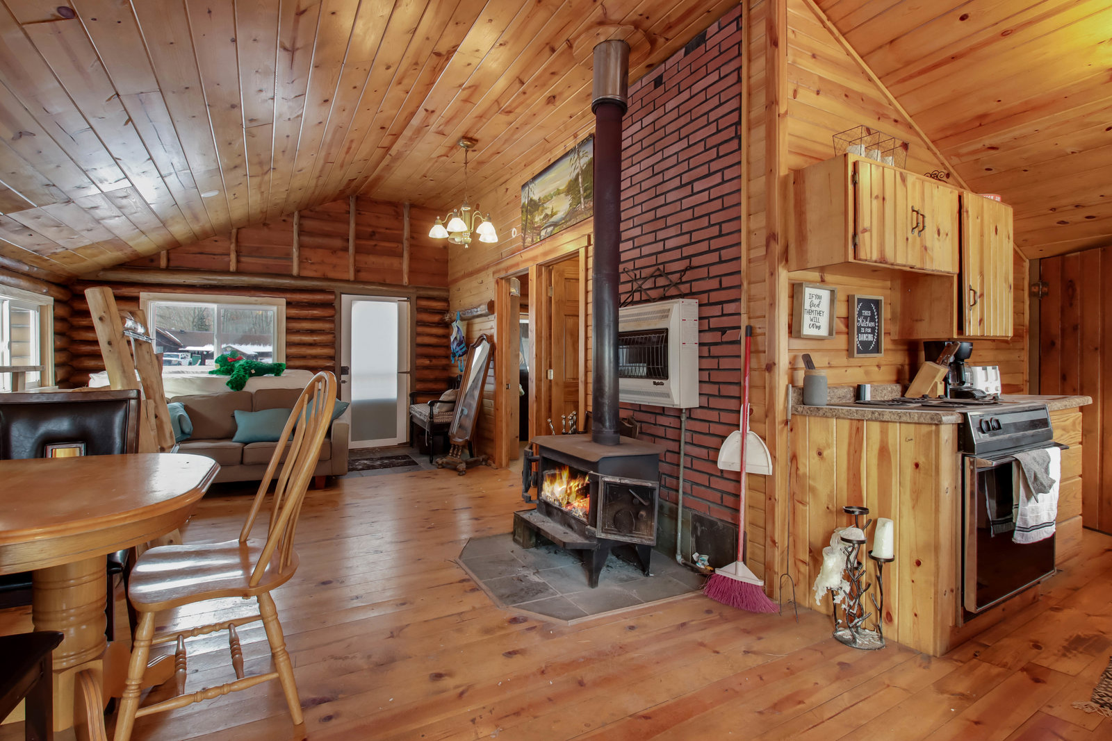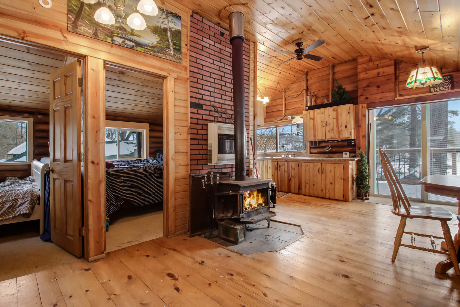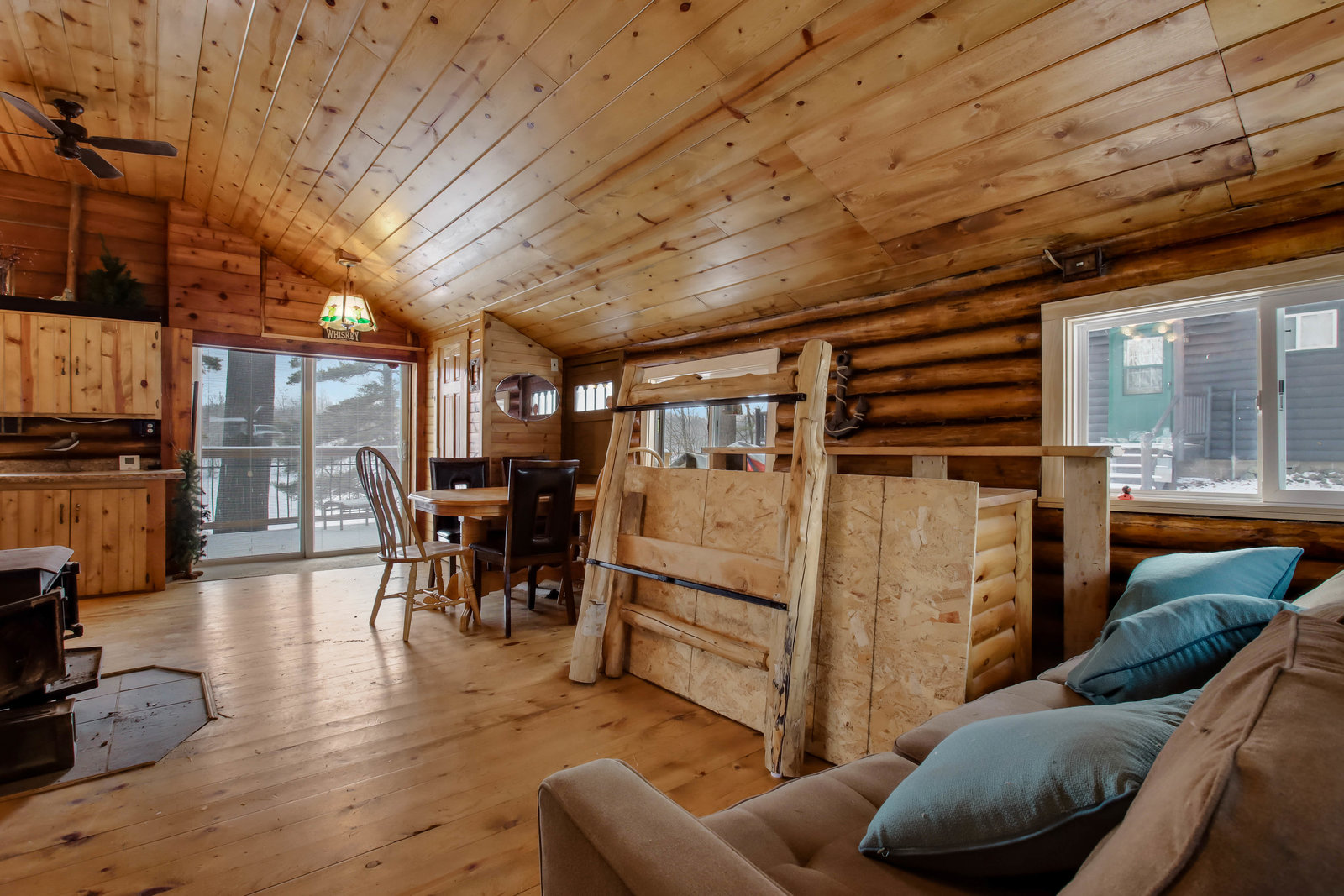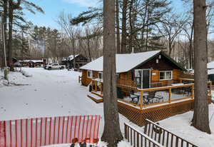 Escape to this cozy 2-bed, 1-bath log cabin nestled on the stunning shores of Long Lake! Offering year-round enjoyment, this cabin features vaulted cedar ceilings and an inviting open concept with a full kitchen. Recent updates include a new furnace, AC, updated windows, and a spray-foamed basement, ensuring comfort and efficiency in all seasons. Stay warm during cooler months with a free-standing wood stove, perfect for relaxing evenings. Step outside to the expansive wraparound deck, where you can savor your morning coffee while taking in breathtaking lake views. In the summer, enjoy endless days of boating, with your own included dock ready for use! Long Lake is known as a prime destination for outdoor recreation, offering fantastic fishing, water activities, and local entertainment. You’ll have easy access to nearby bars, restaurants, and even a boat-up golf course! This is the perfect retreat for anyone looking to combine relaxation with adventure.
