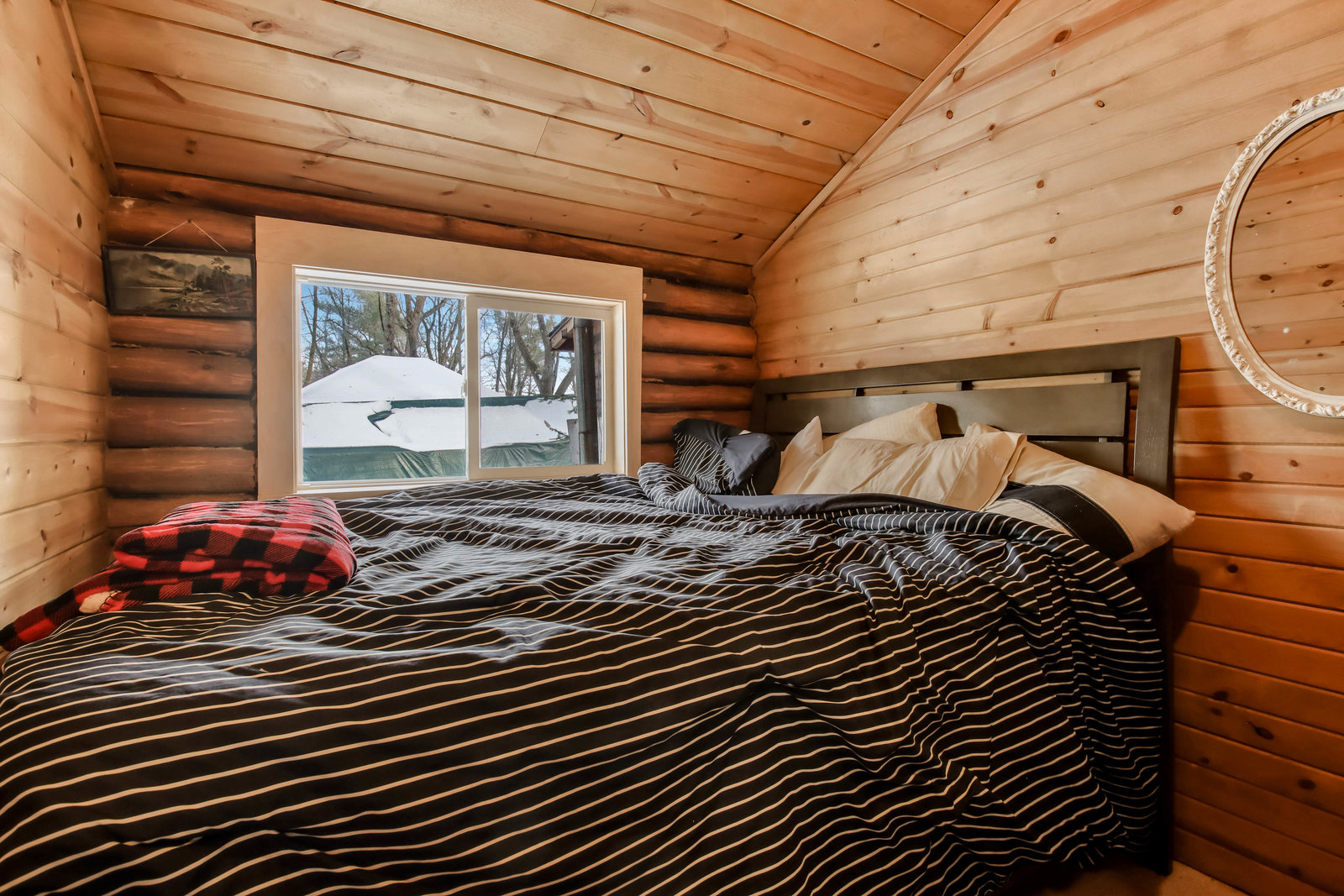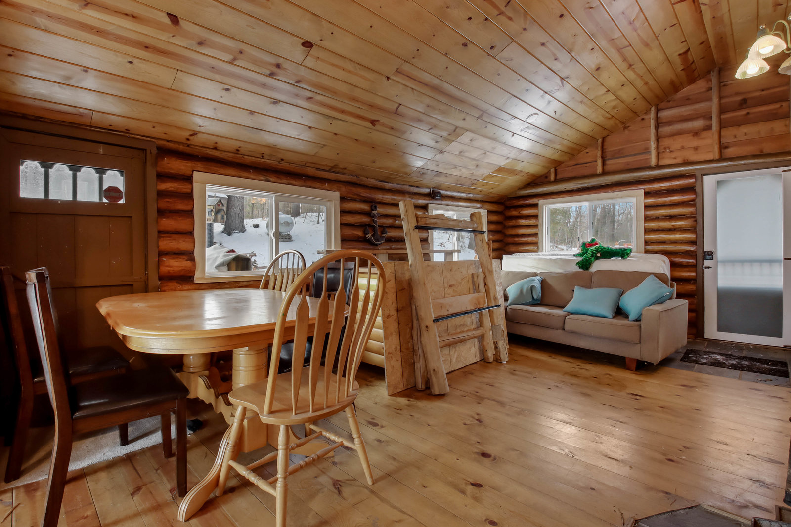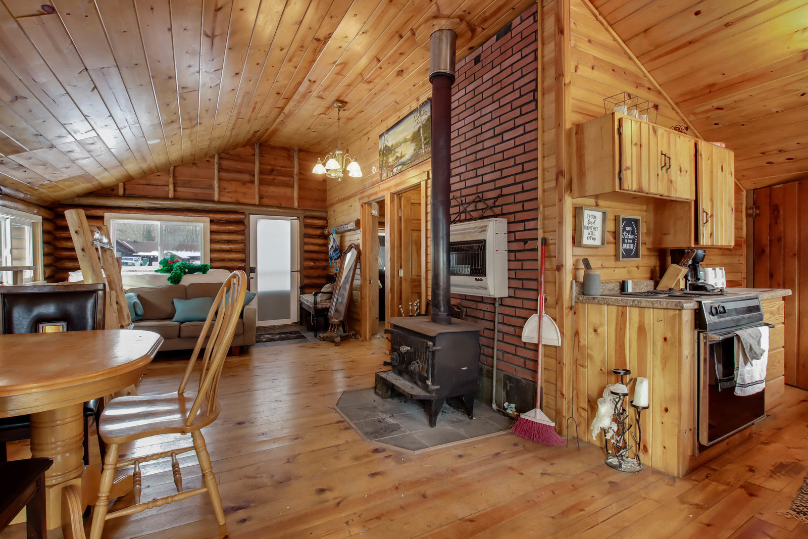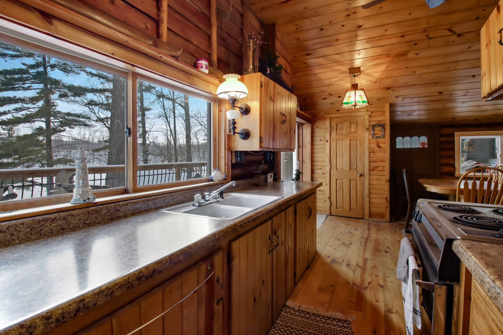 Escape to this cozy 2-bed, 1-bath log cabin nestled on the stunning shores of Long Lake! Offering year-round enjoyment, this cabin features vaulted cedar ceilings and an inviting open concept with a full kitchen. Recent updates include a new furnace, AC, updated windows, and a spray-foamed basement, ensuring comfort and efficiency in all seasons. Stay warm during cooler months with a free-standing wood stove, perfect for relaxing evenings. Step outside to the expansive wraparound deck, where you can savor your morning coffee while taking in breathtaking lake views. In the summer, enjoy endless days of boating, with your own included dock ready for use! Long Lake is known as a prime destination for outdoor recreation, offering fantastic fishing, water activities, and local entertainment. You’ll have easy access to nearby bars, restaurants, and even a boat-up golf course! This is the perfect retreat for anyone looking to combine relaxation with adventure.